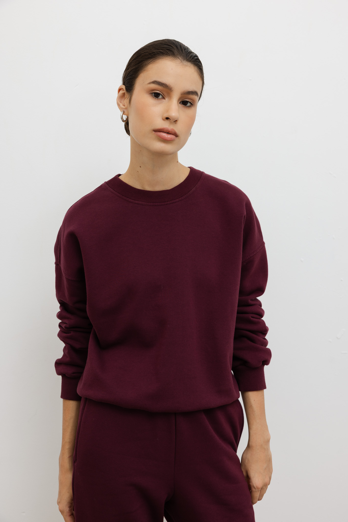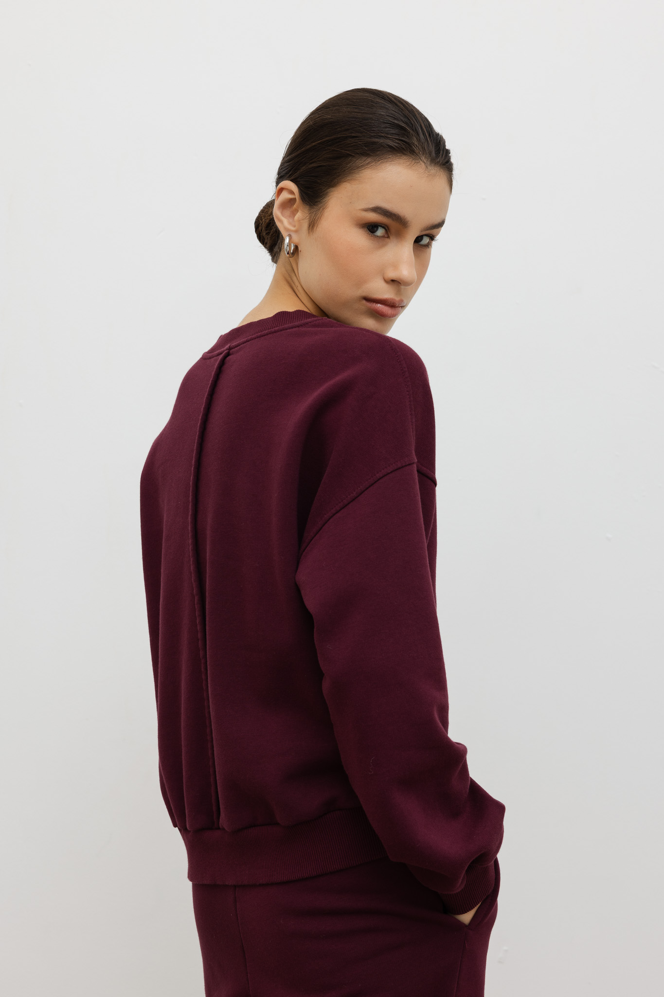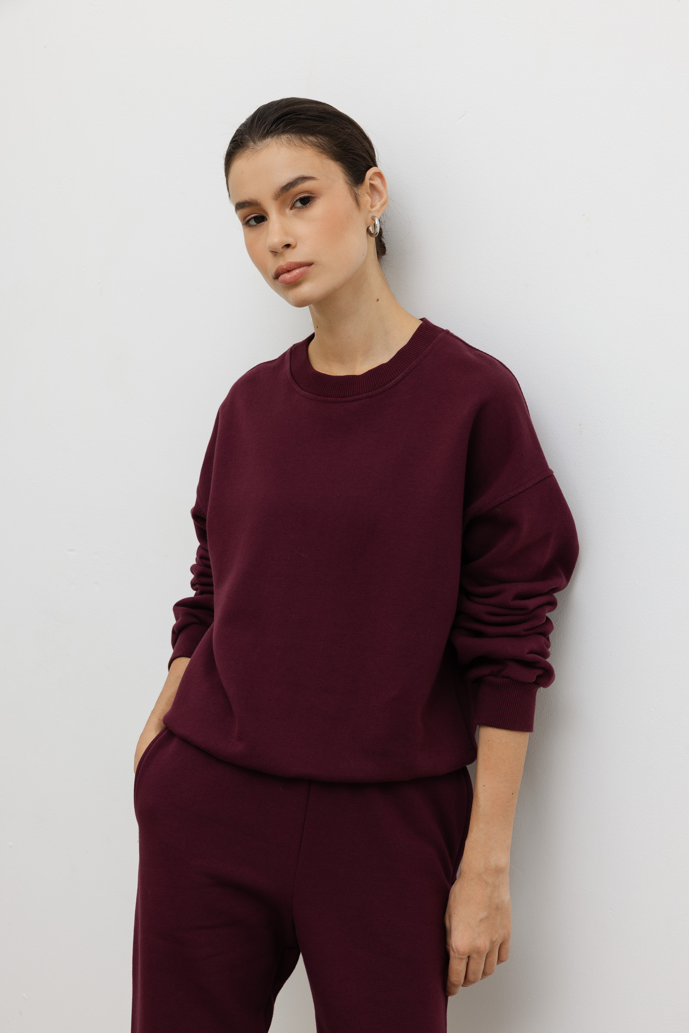 BLUZA LOLA WINO damska oversizowa bluza bez kaptura wino
