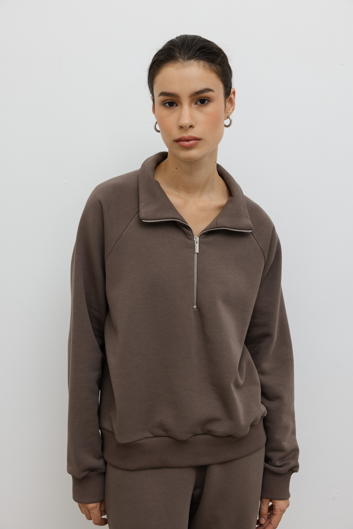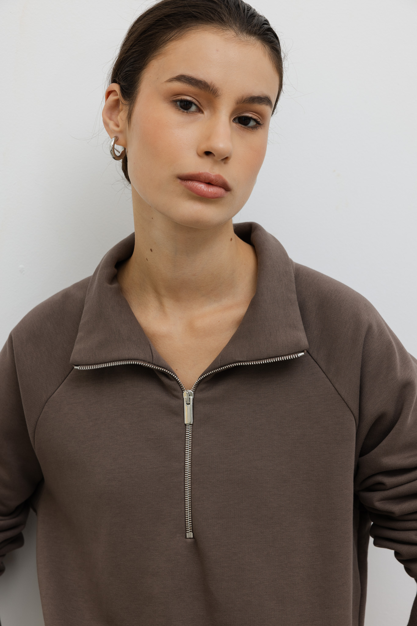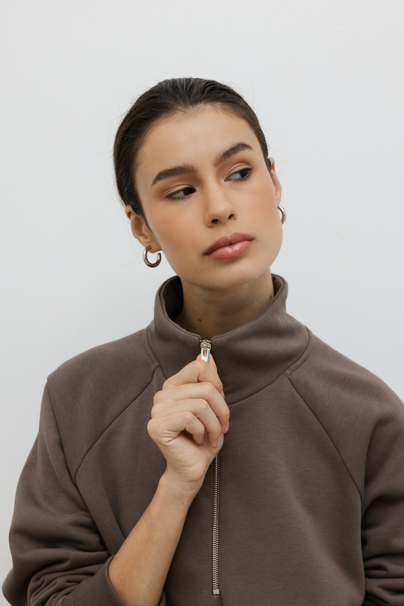 BLUZA VIKI KAKAO damska bawełniana bluza z suwakiem kakao