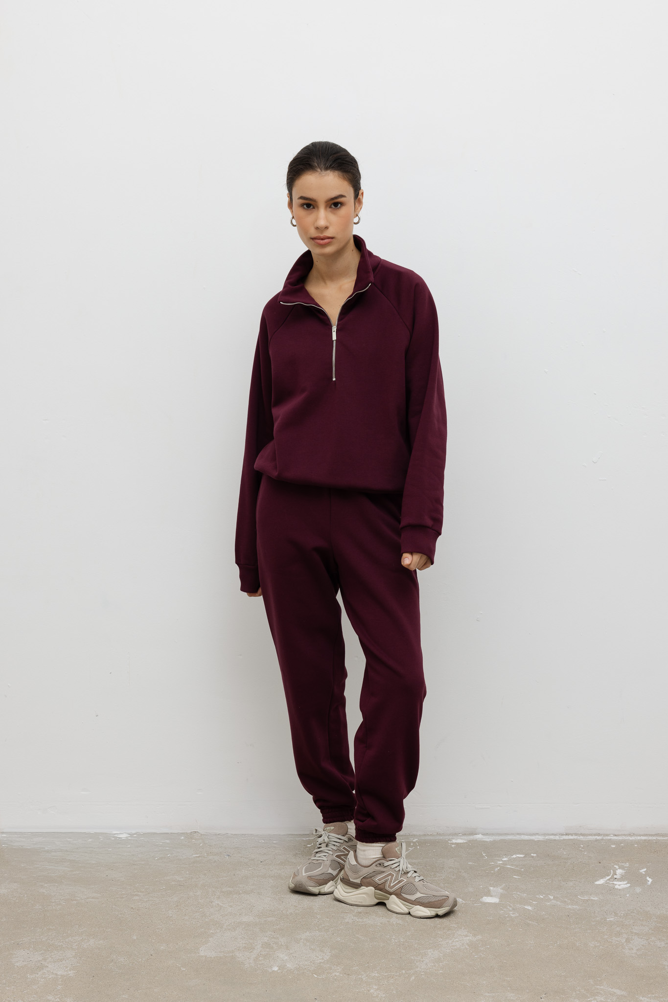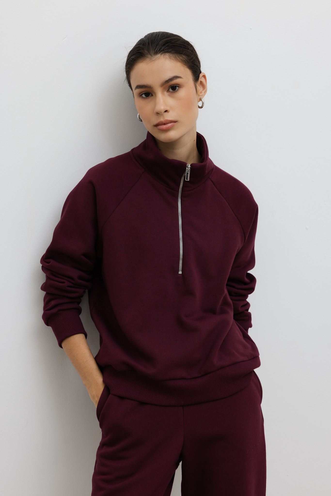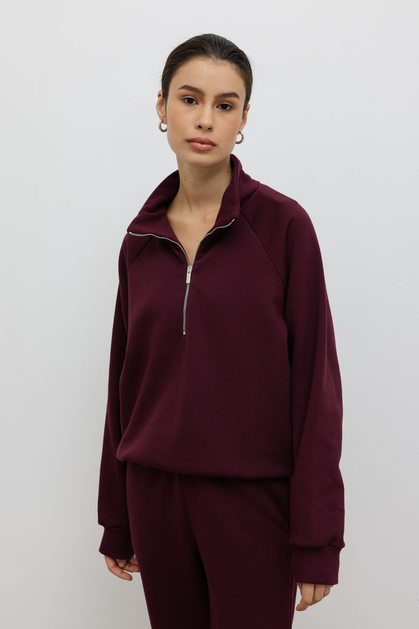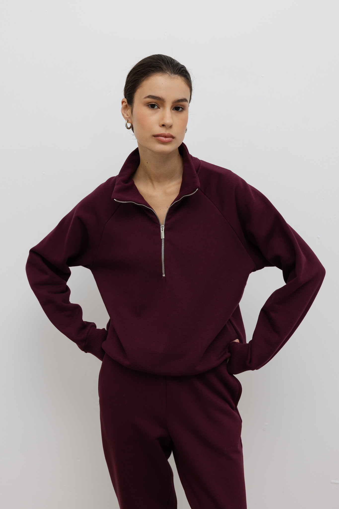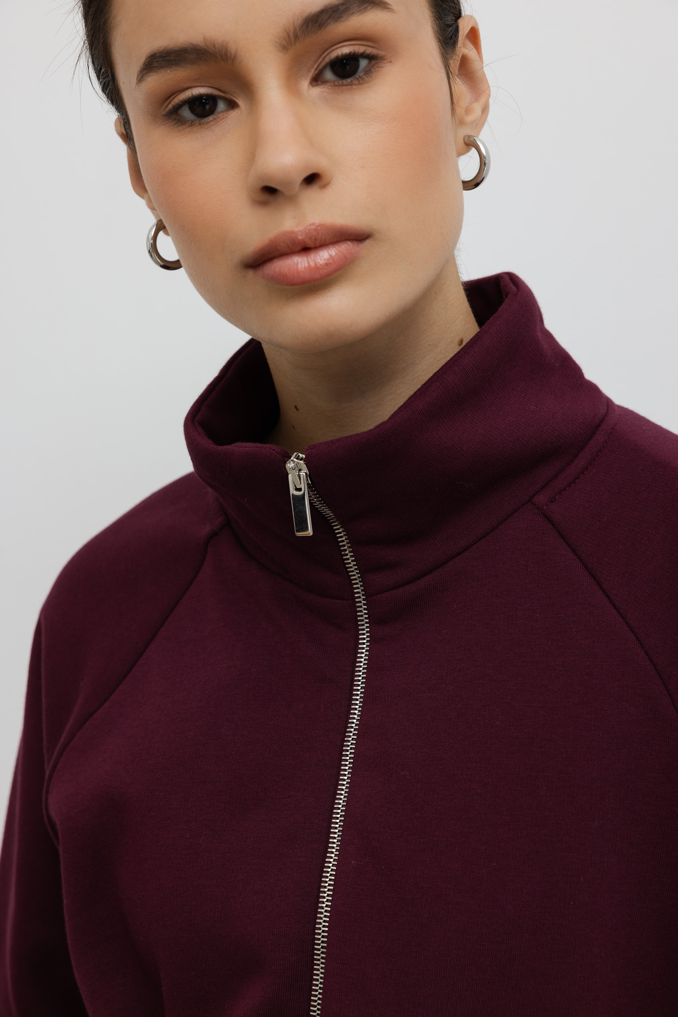 BLUZA VIKI WINO damska bawełniana bluza z suwakiem wino