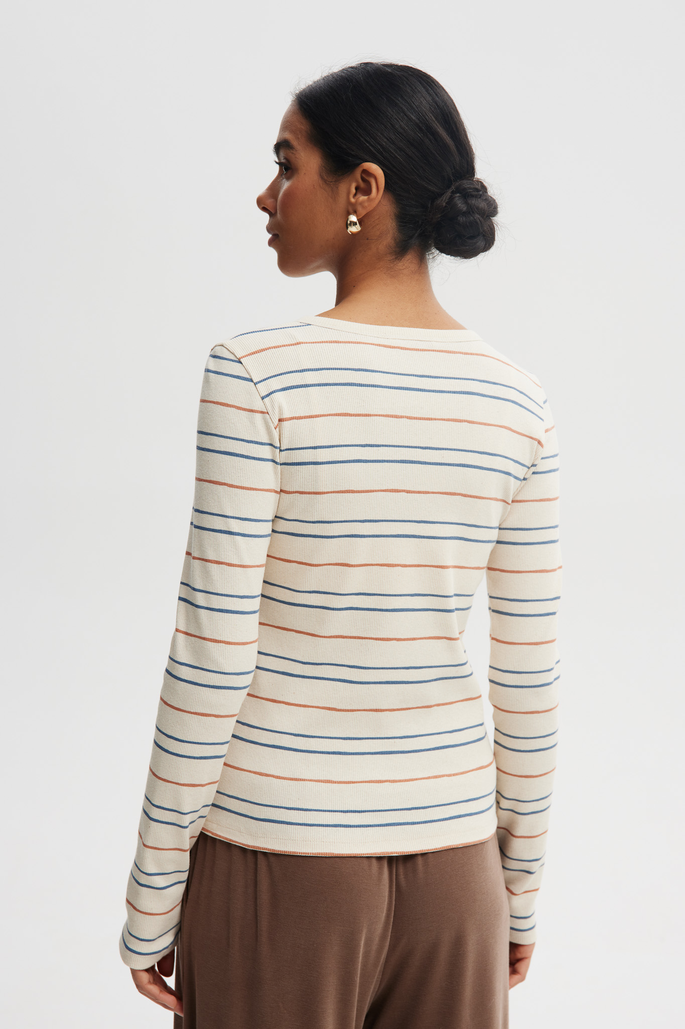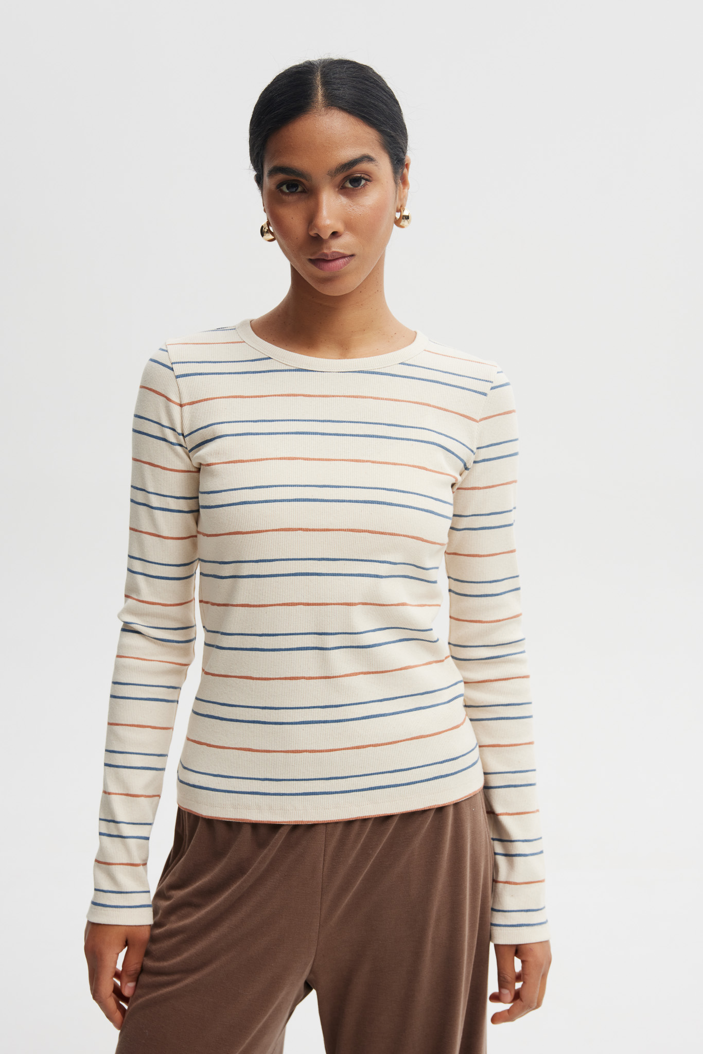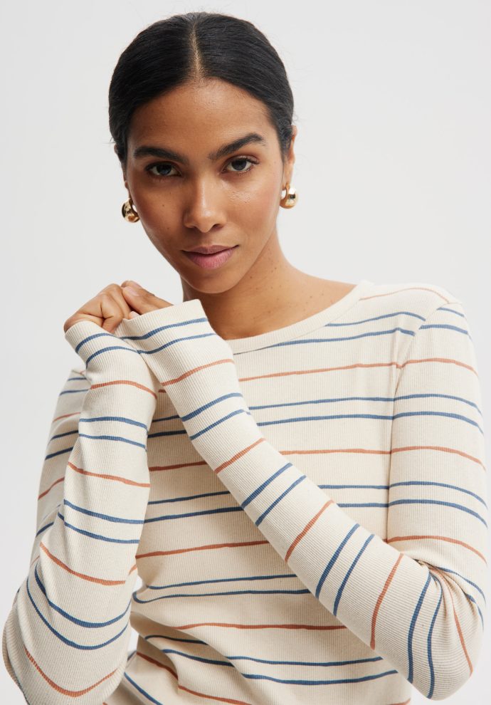 Dopasowana bluzka z elastycznego ściągacza wykonana z wysokiej jakości bawełny z dodatkiem elastanu. Miękka, oddychająca dzianina doskonale układa się na sylwetce i zapewnia komfort noszenia przez cały dzień. Klasyczny fason z długim rękawem i subtelnym prążkiem sprawia, że bluzka świetnie sprawdzi się zarówno w codziennych, jak i bardziej eleganckich stylizacjach.