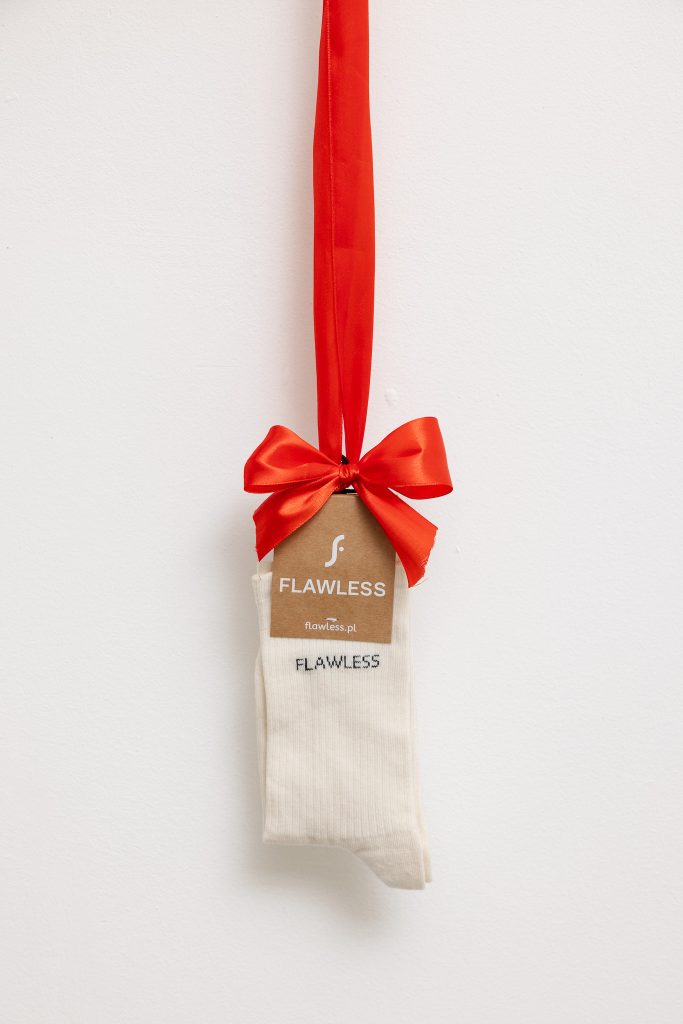 Skarpety Lily. Ecru z napisem FLAWLESS.