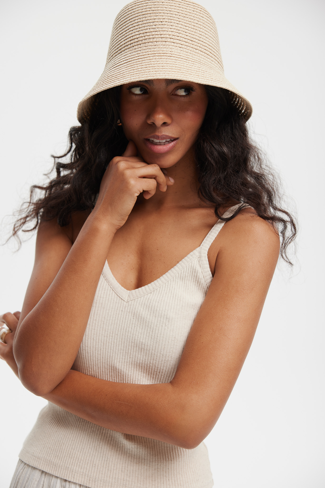 damski KAPELUSZ BACKET RETRO BEŻOWY