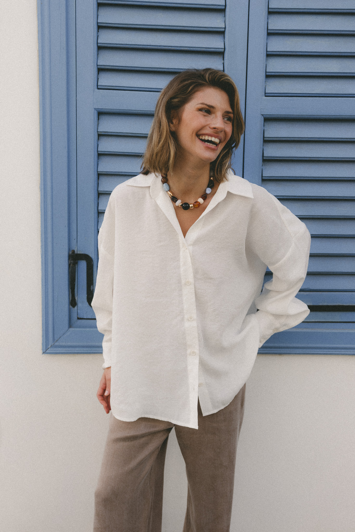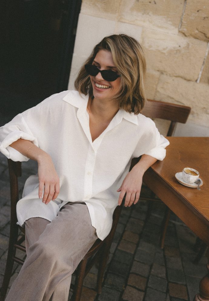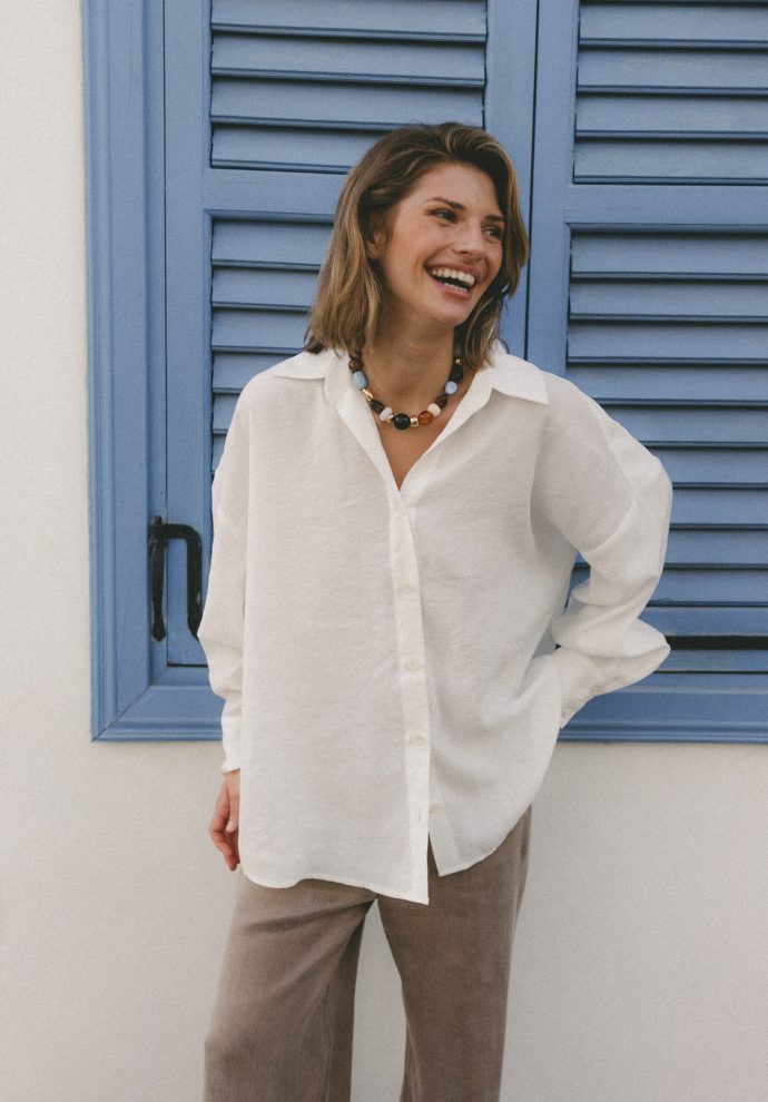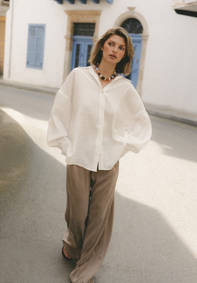 Koszula Linda ecru to klasyk oversize,ktory zachwyca delikatnością ,perfekcją wykonania ,dbałością o każdy szczegół .Dla mnie to koszula idealna ,cudownie wygląda z brązowymi spodniami Pablo ,w towarzystwie kamizelki Laura czy trenczu Sonia i do spodni Marina .Linda ma w sobie nonszalancję ,wyróżnia się i z pewnością będzie bazą wielu moich stylizacji .Polecam 🤍🤍🤍