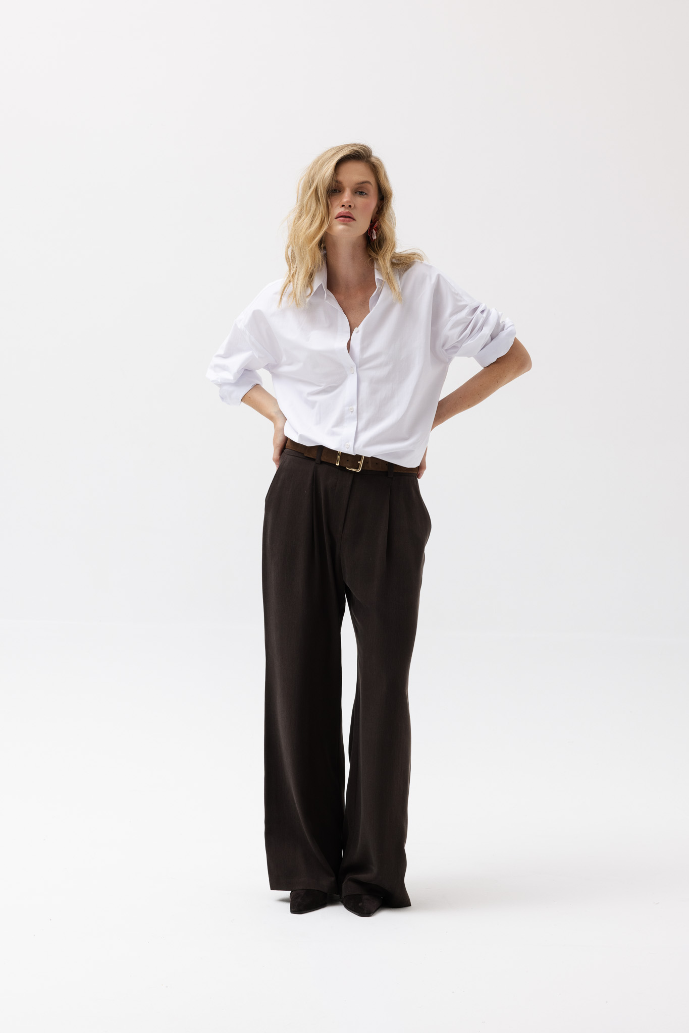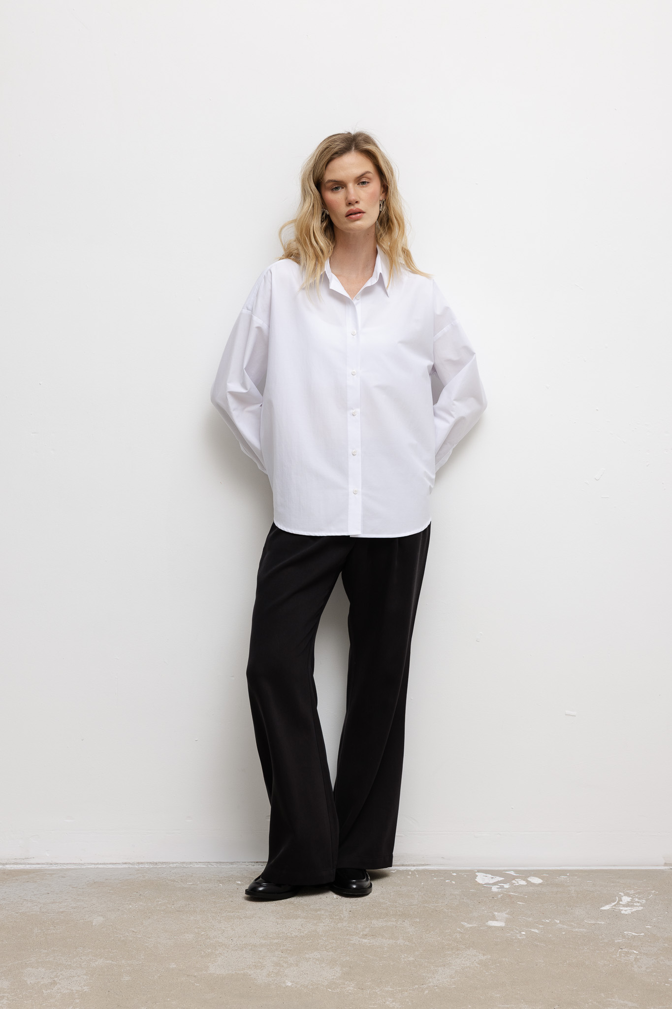 Ta klasyczna koszula została uszyta z wysokiej jakości, oddychającej bawełny, zapewniającej komfort przez cały dzień. Model wyróżnia się lekko oversize’owym fasonem, który nadaje stylizacji swobodny, nowoczesny charakter.
