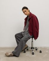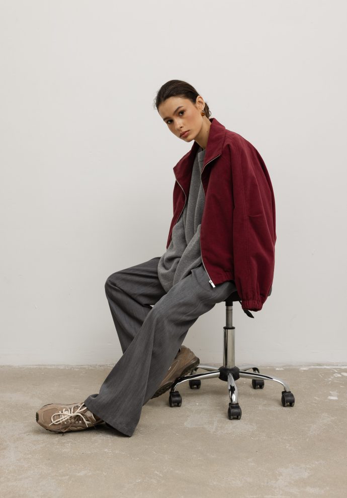 Olivia to oryginalna kurtka oversize w przyciągającym wzrok bordowym kolorze.