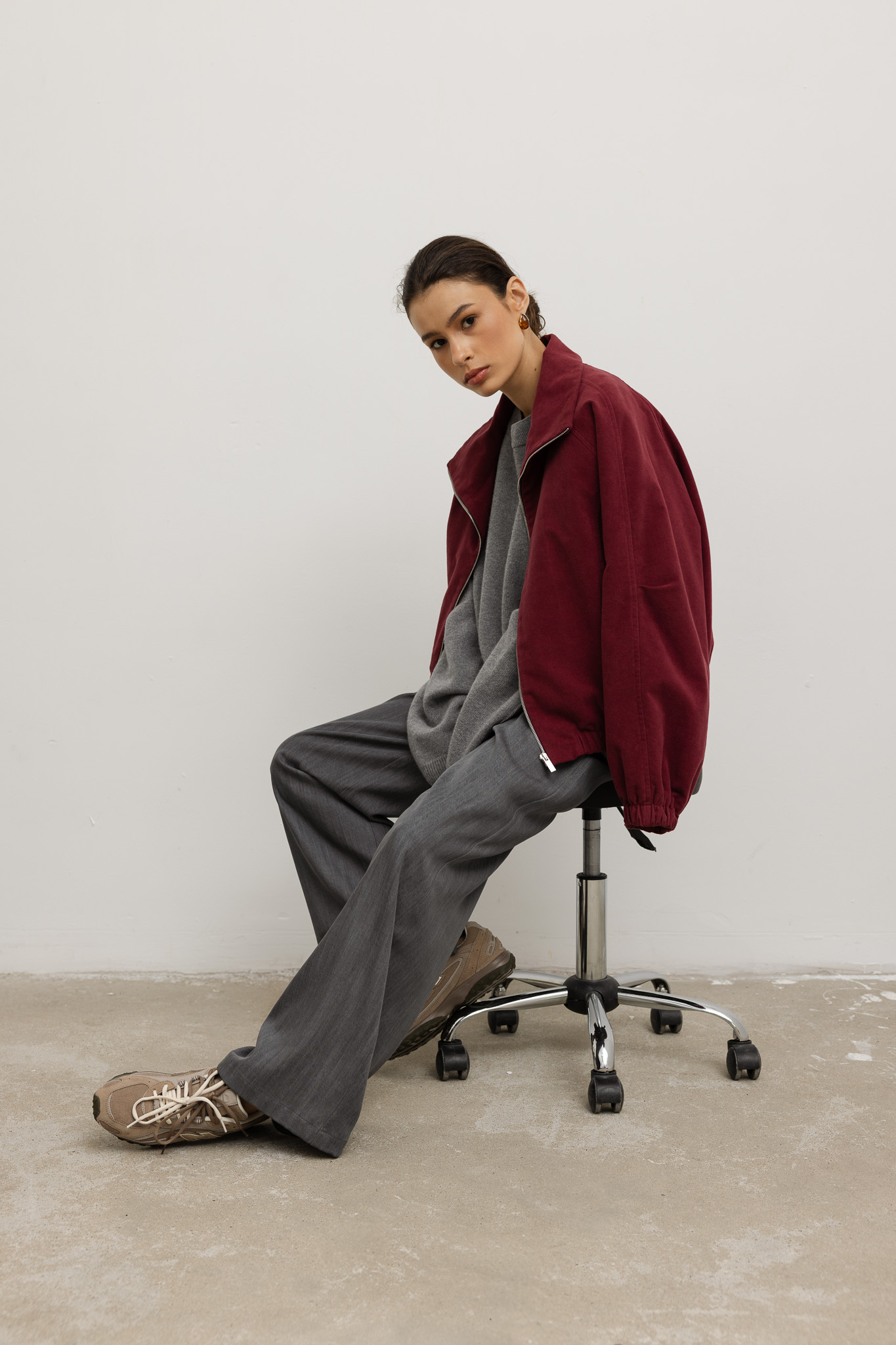 KURTKA OLIVIA BORDOWA oversizowa bomberka z podszewka bordowa