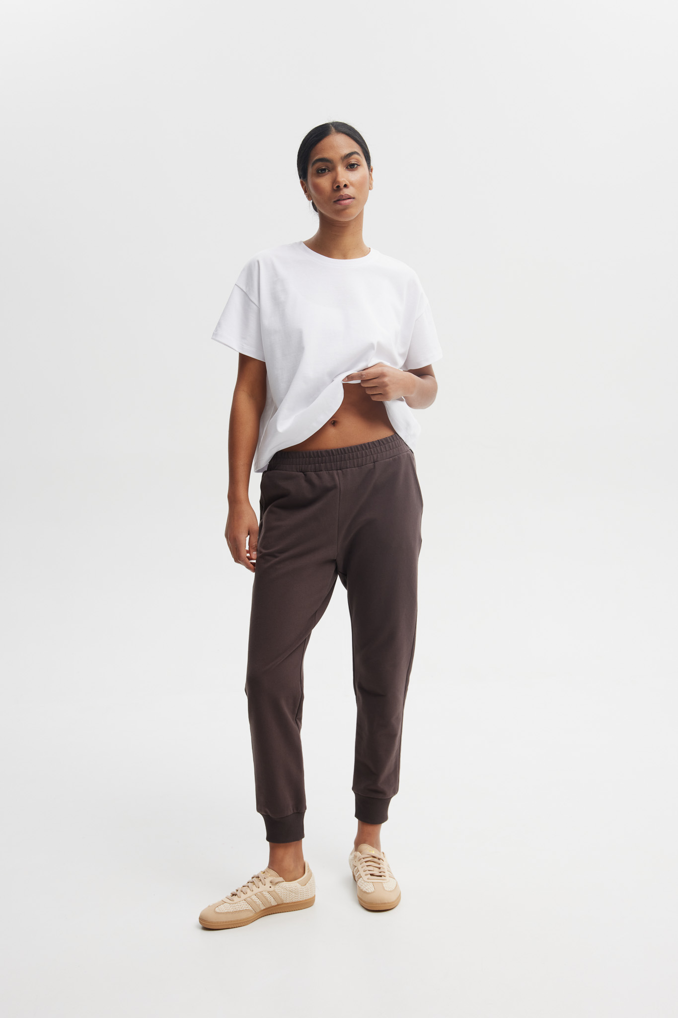 SPODNIE LENA CZEKOLADOWE damskie dresowe spodnie bawełniane czekoladowe