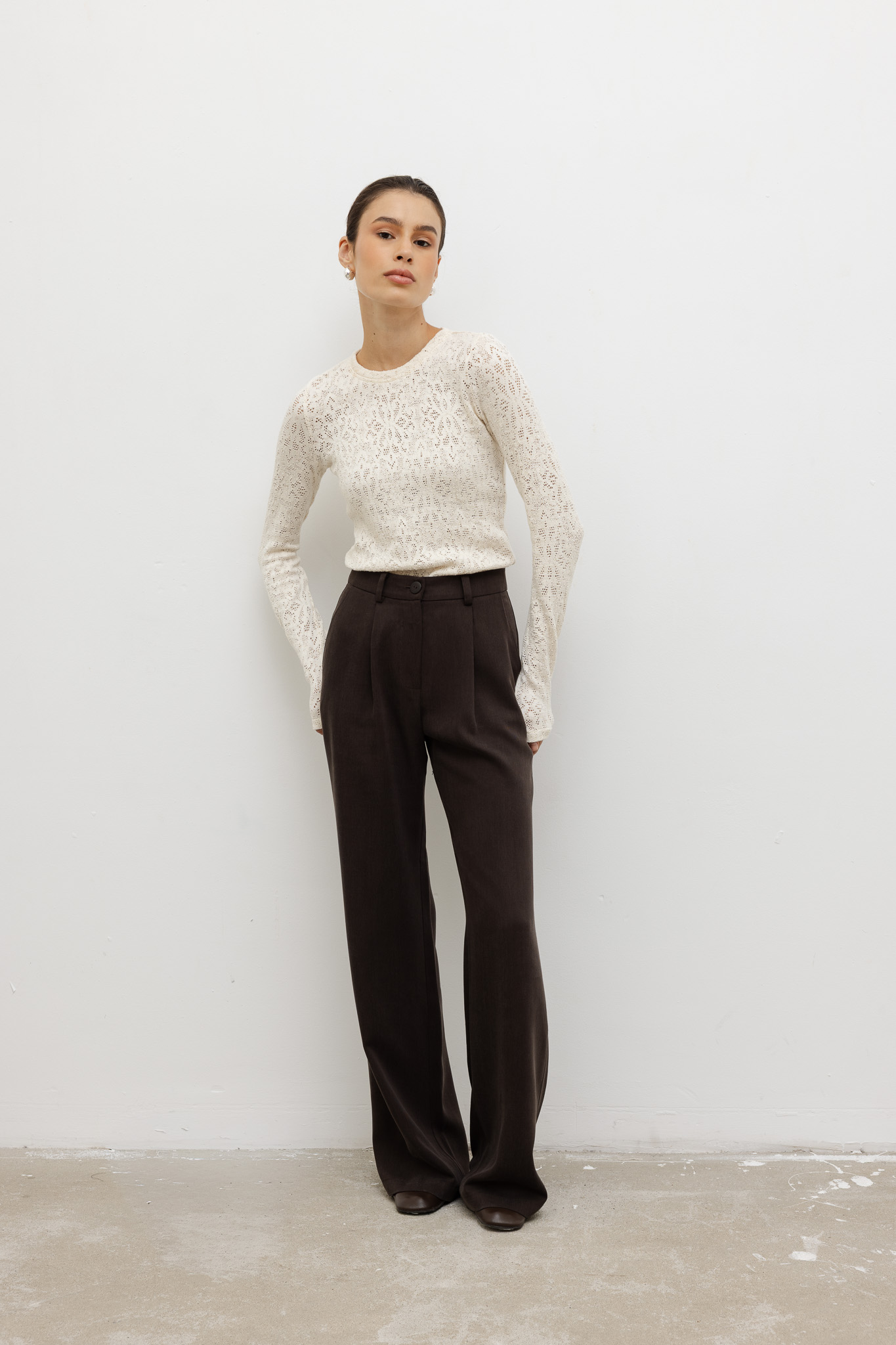 Spodnie Mira, dzięki swojej uniwersalności, błyskawicznie dopasowują się do stylizacji – założone do sneakersów wyglądają nonszalancko i nowocześnie. Z loafersami nabierają wyrafinowanego charakteru, a w połączeniu z sandałami na obcasie tworzą elegancki, miejski look.
