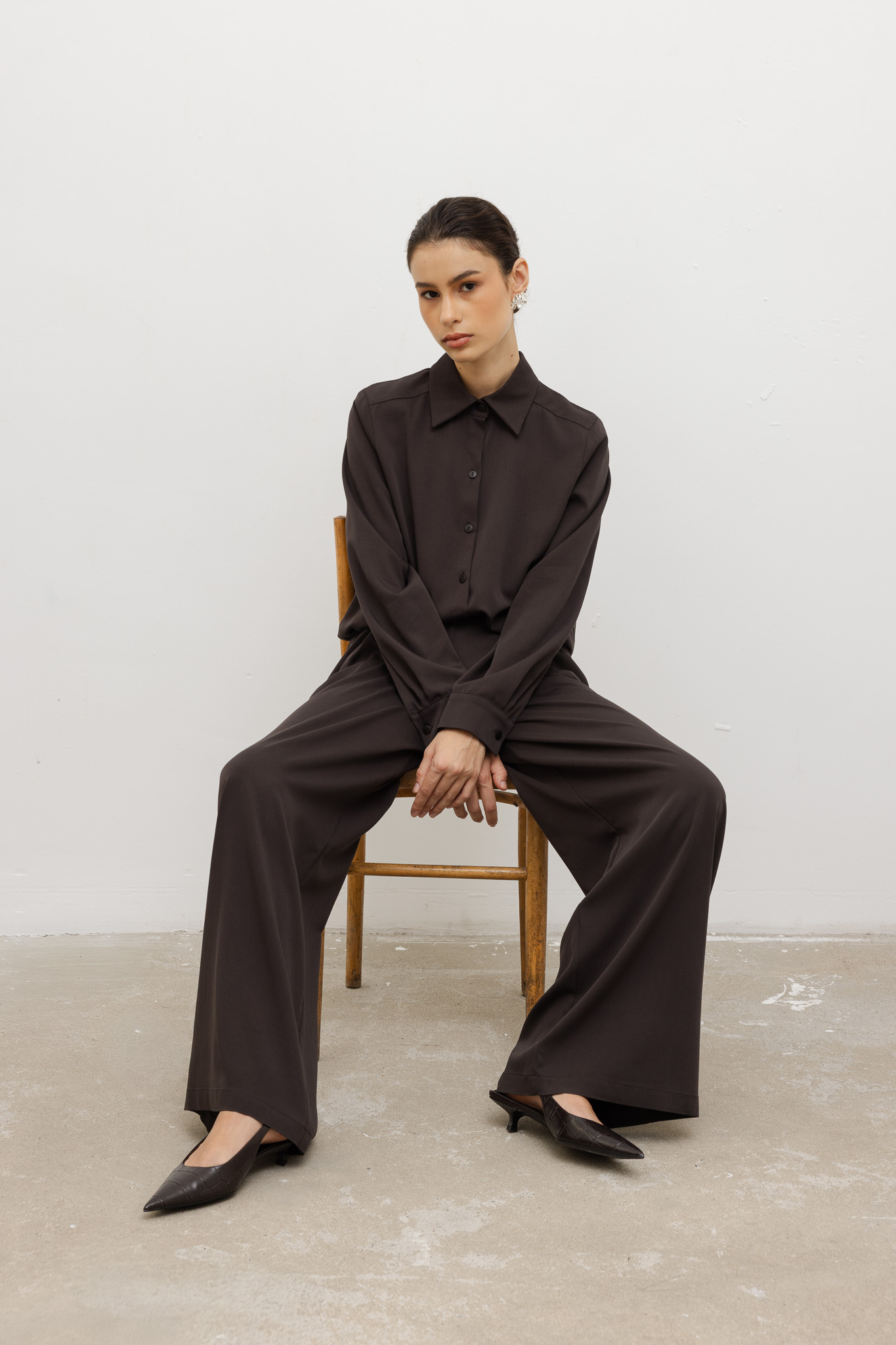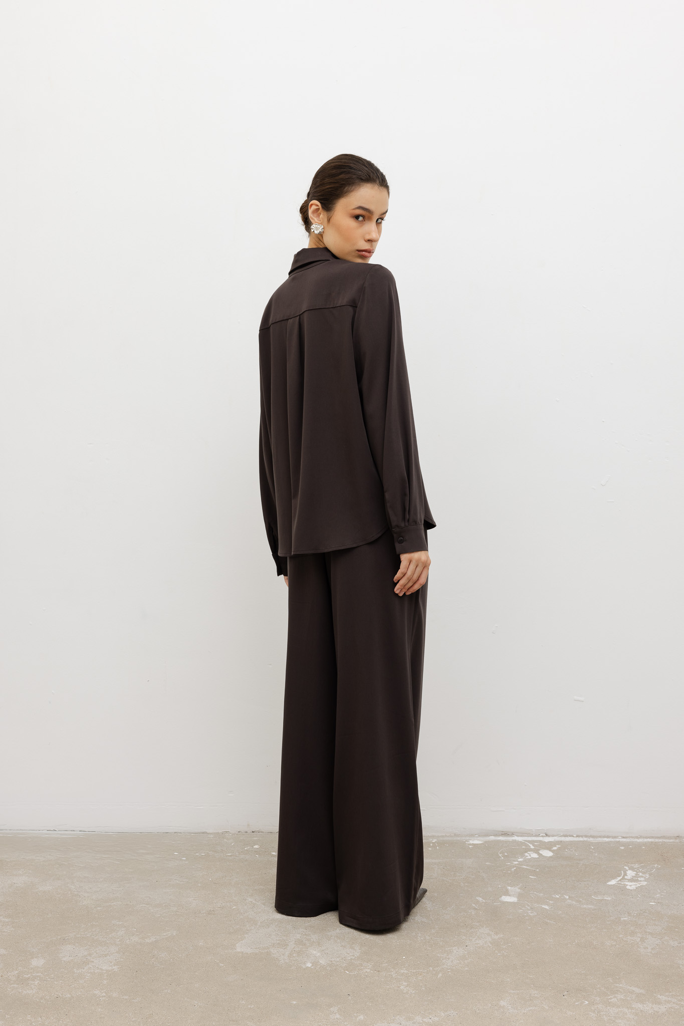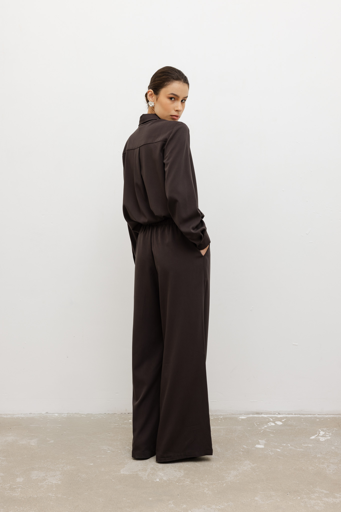 SPODNIE MONICA CZEKOLADOWE damskie casualowe wiskozowe spodnie czekoladowe