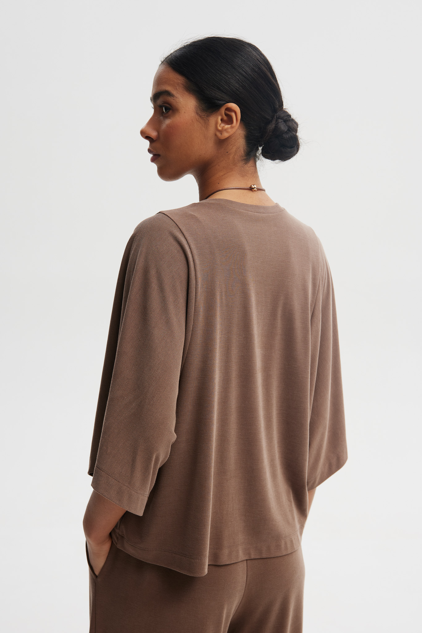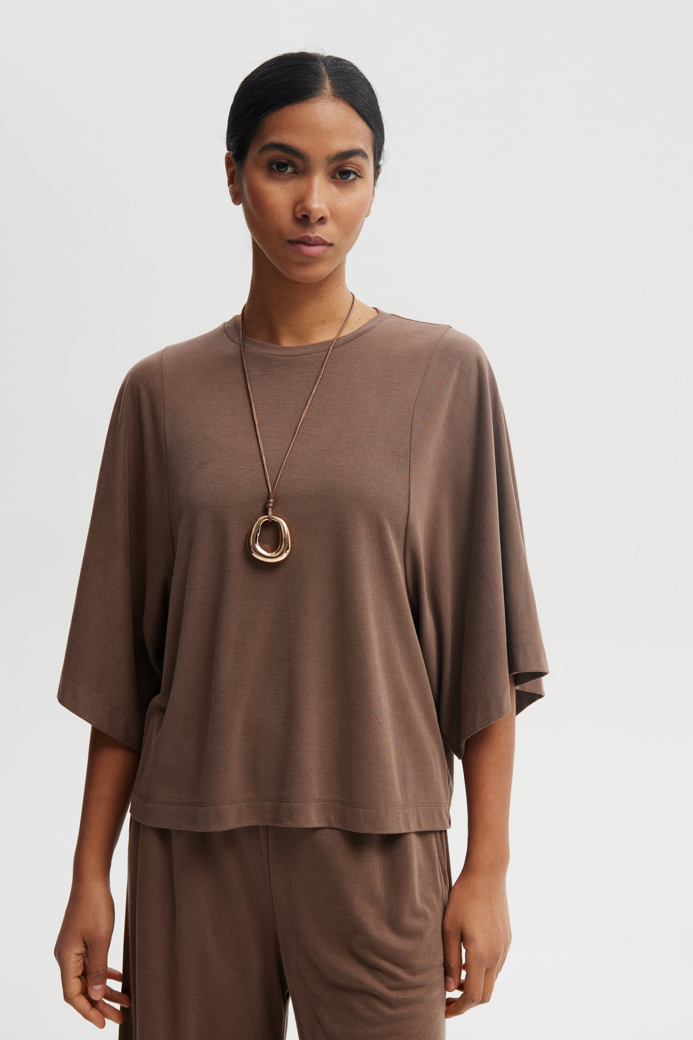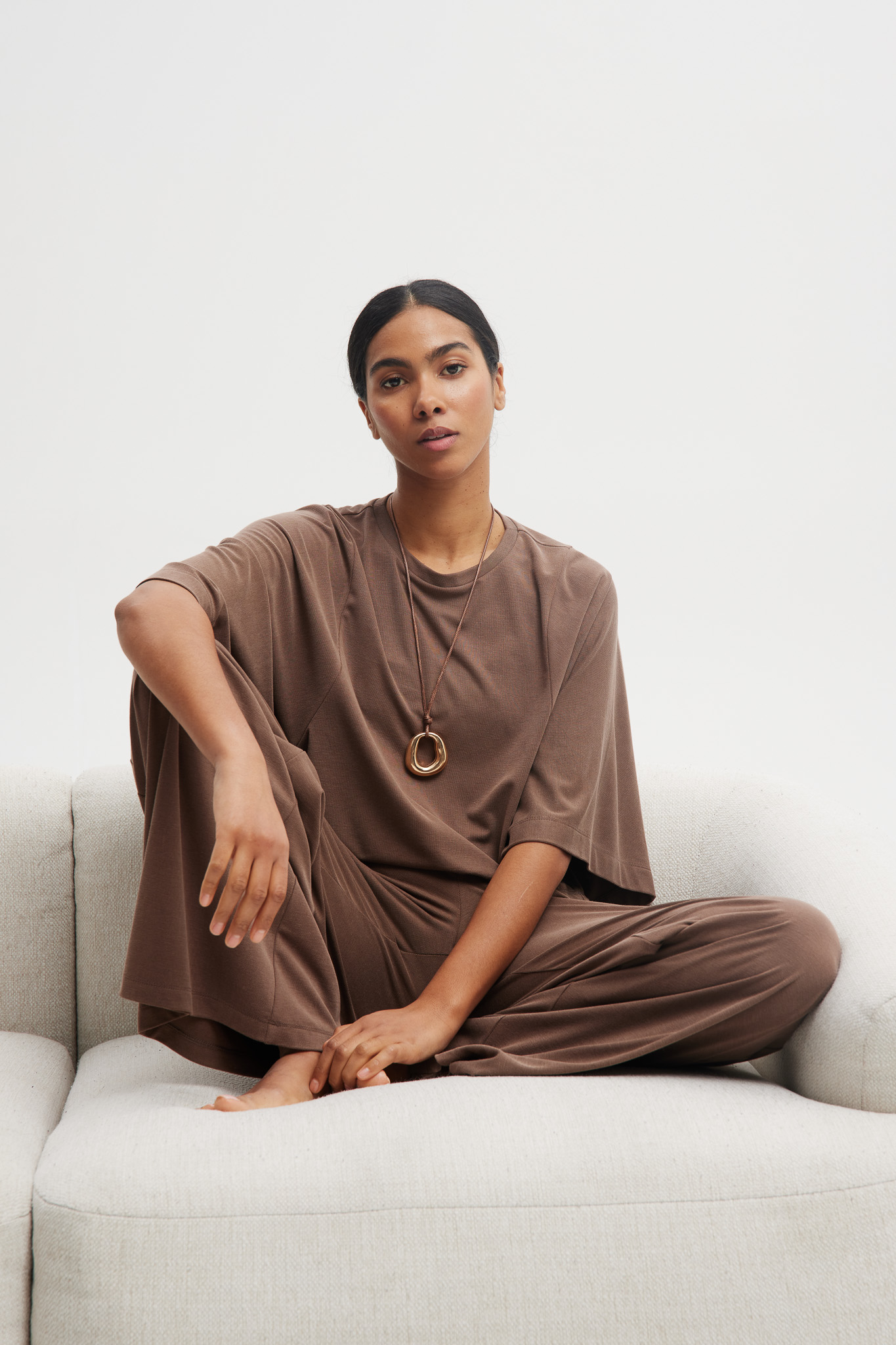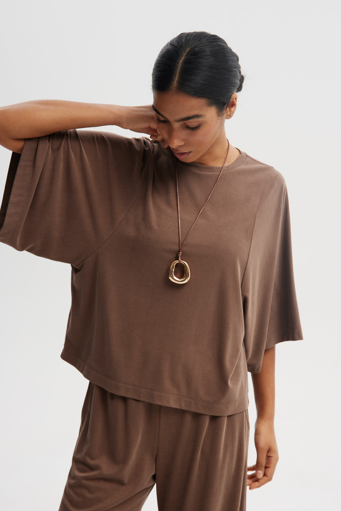 Luna to klasyczny T-shirt w nowoczesnej odsłonie. Oversize’owy fason i obszerne rękawy nadają mu modny, miejski charakter, a luźny krój zapewnia wygodę na co dzień. Krótsza długość świetnie komponuje się ze spodniami i spódnicami z wysokim stanem, tworząc uniwersalną i ponadczasową bazę stylizacji.
