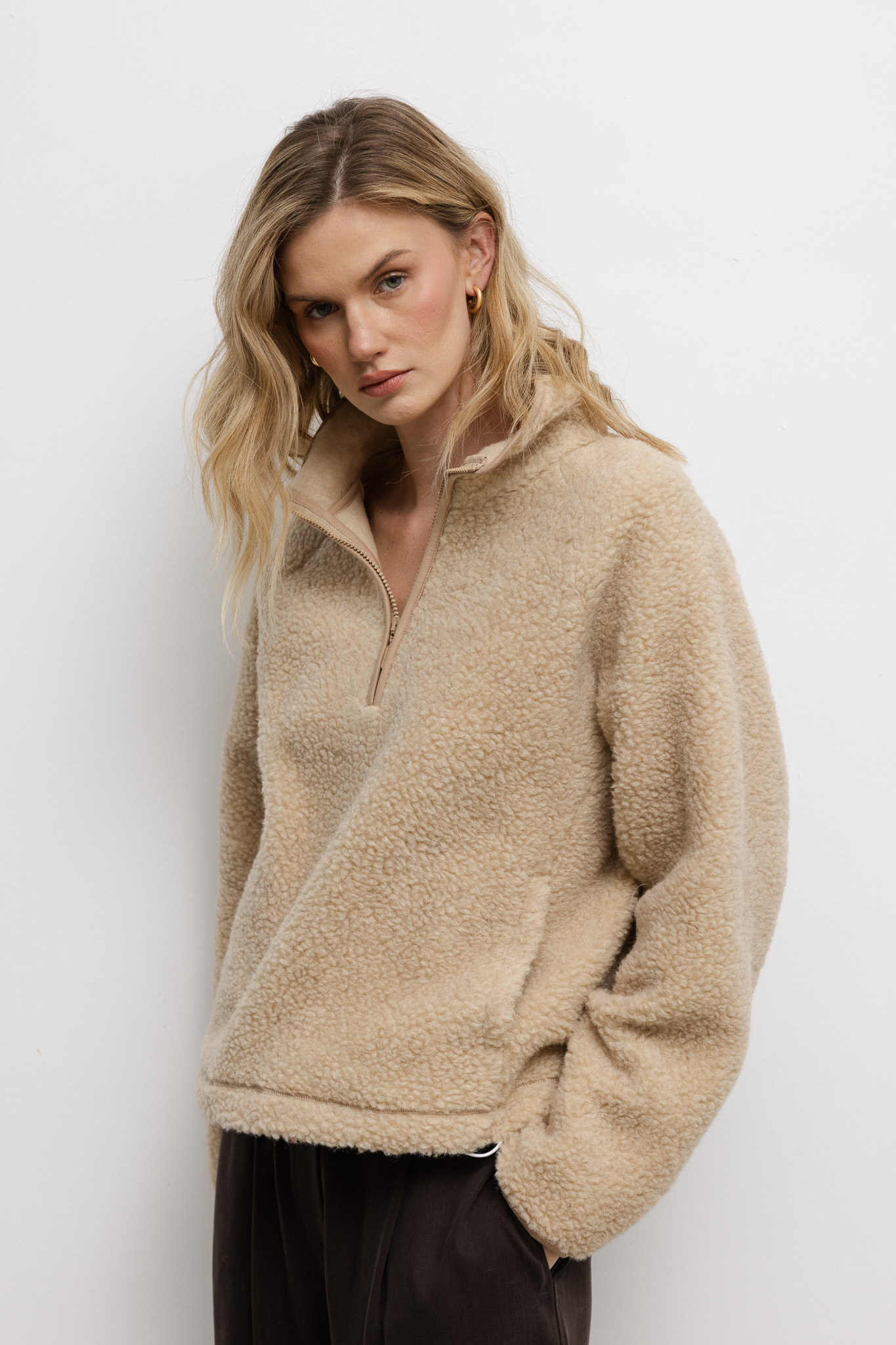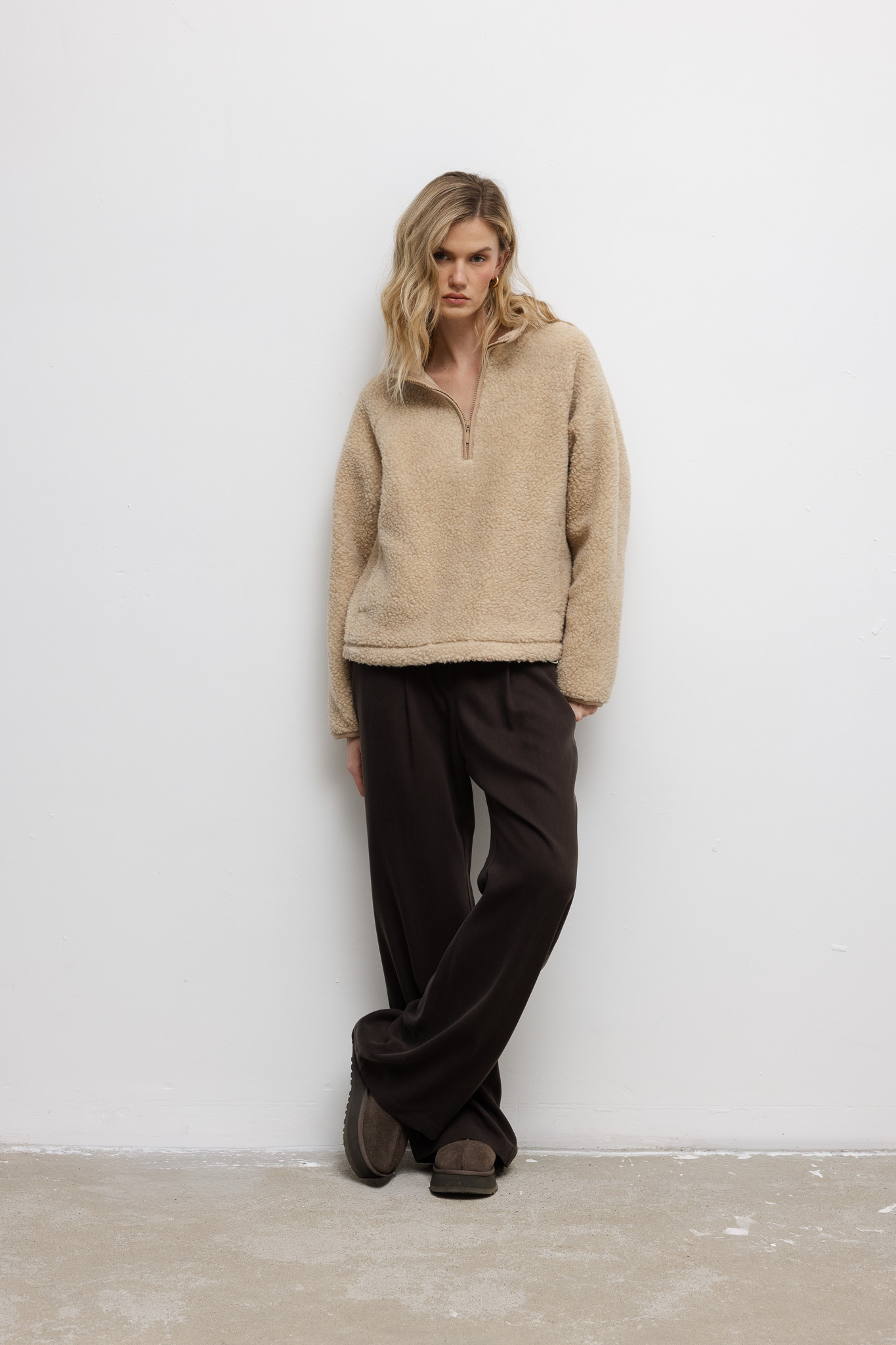 damska WEŁNIANA BLUZA TEDDY BEŻOWA