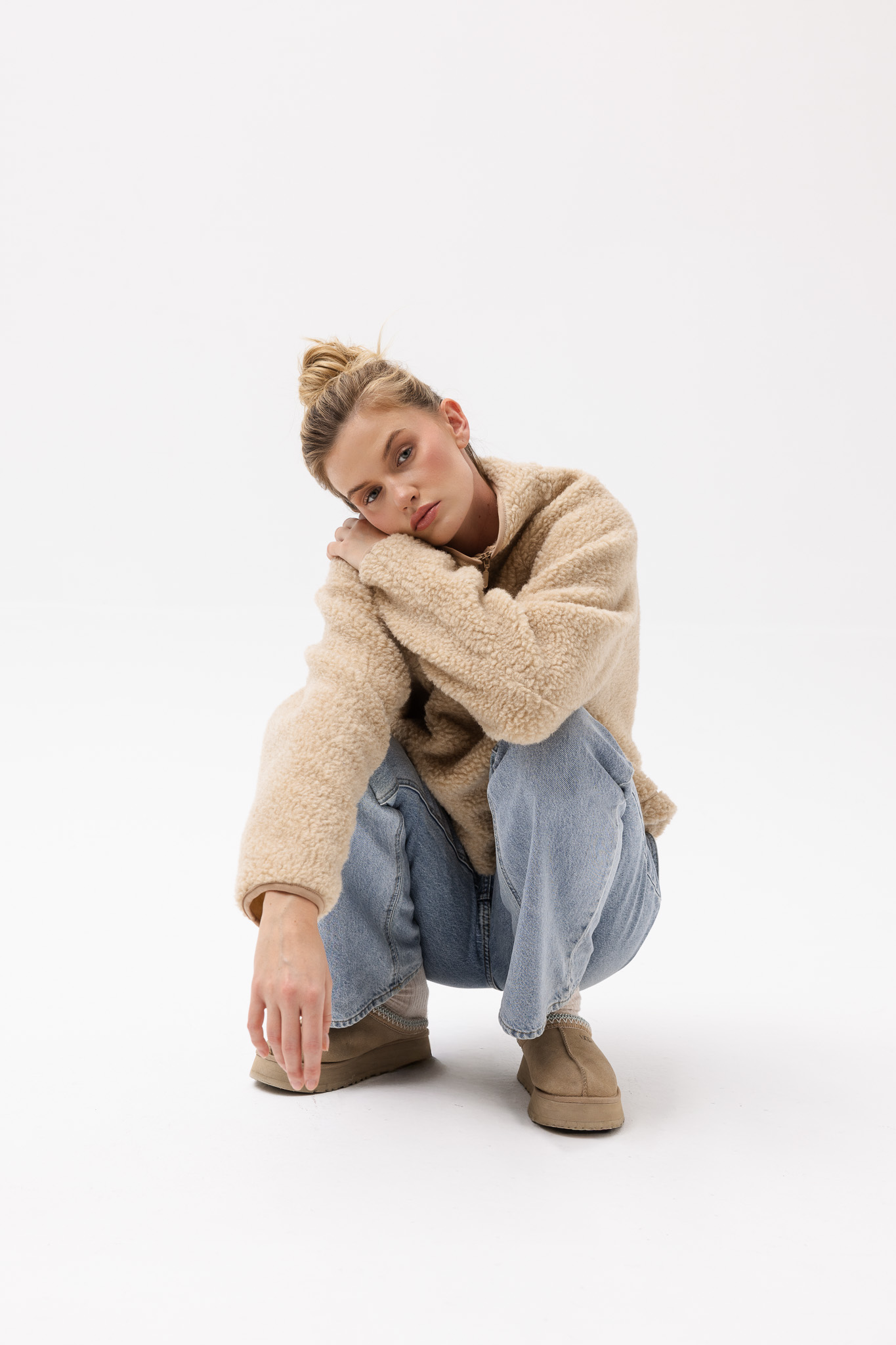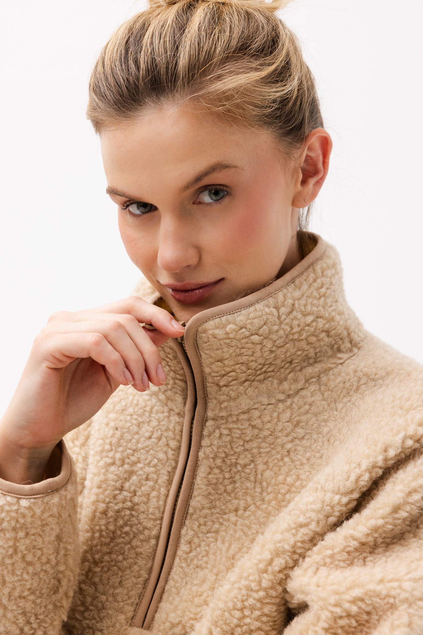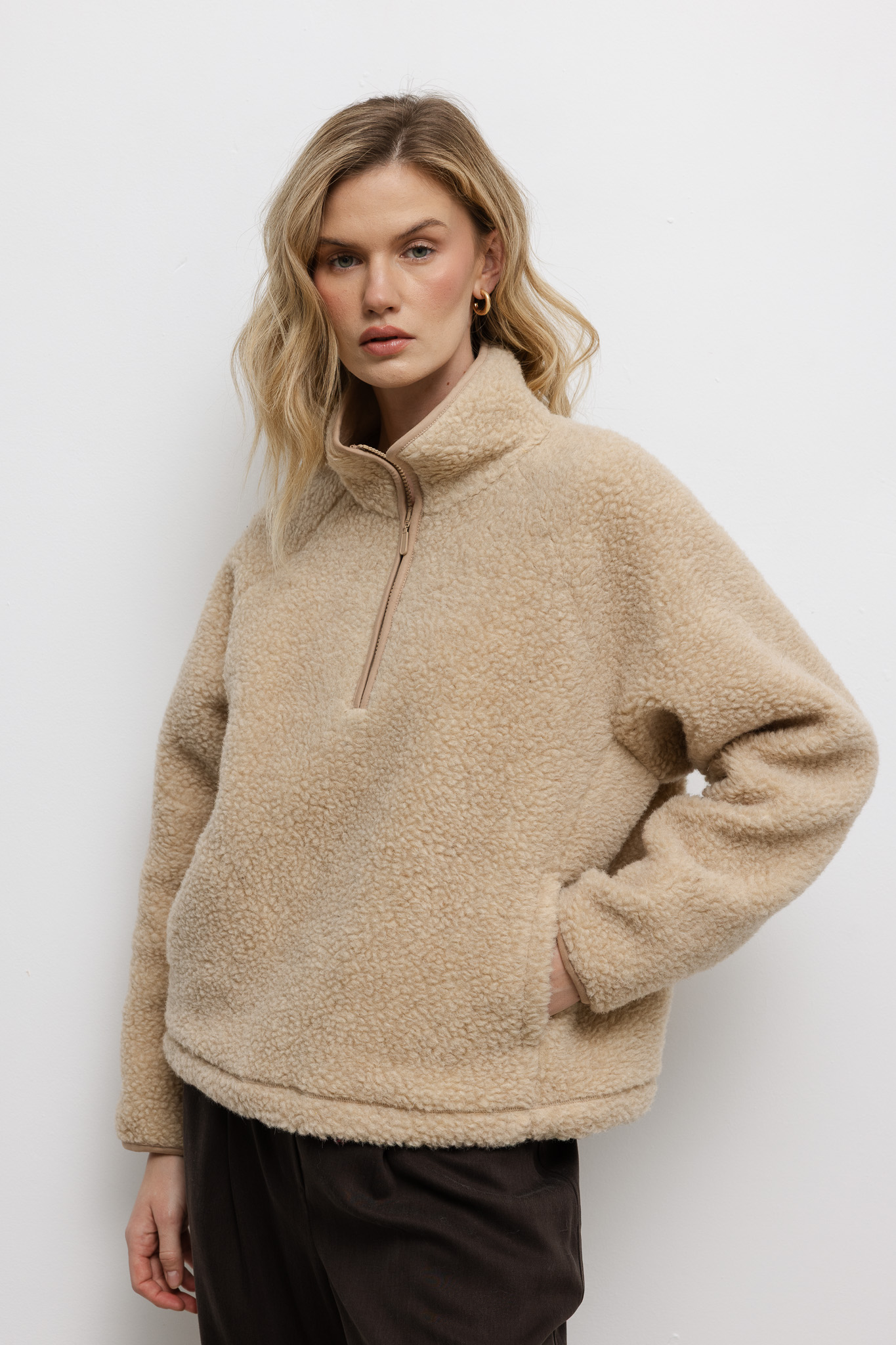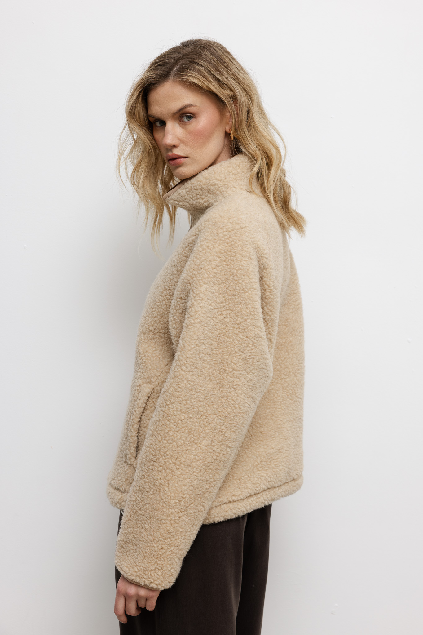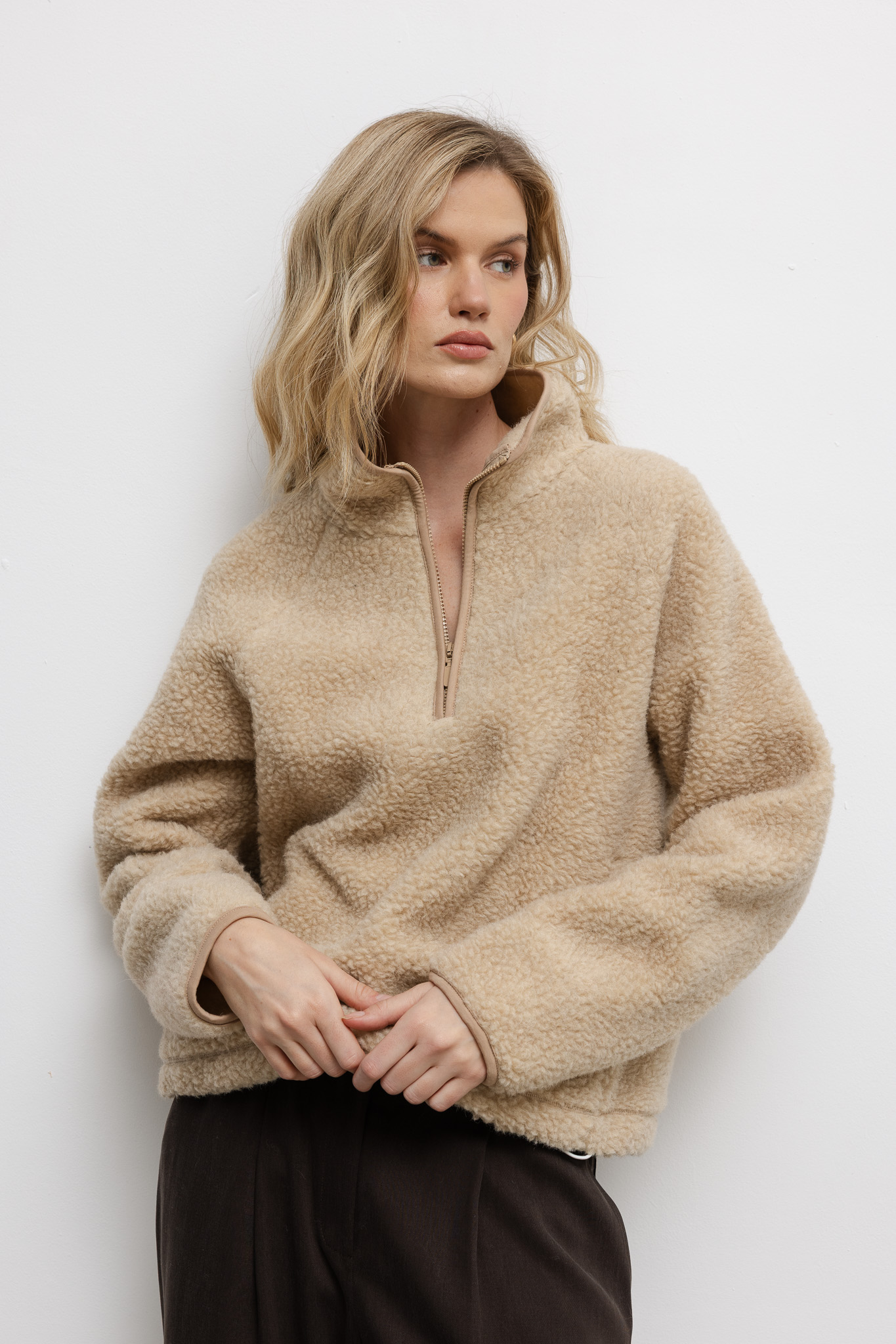 WEŁNIANA BLUZA TEDDY BEŻOWA damska bluza typu baranek beżowa