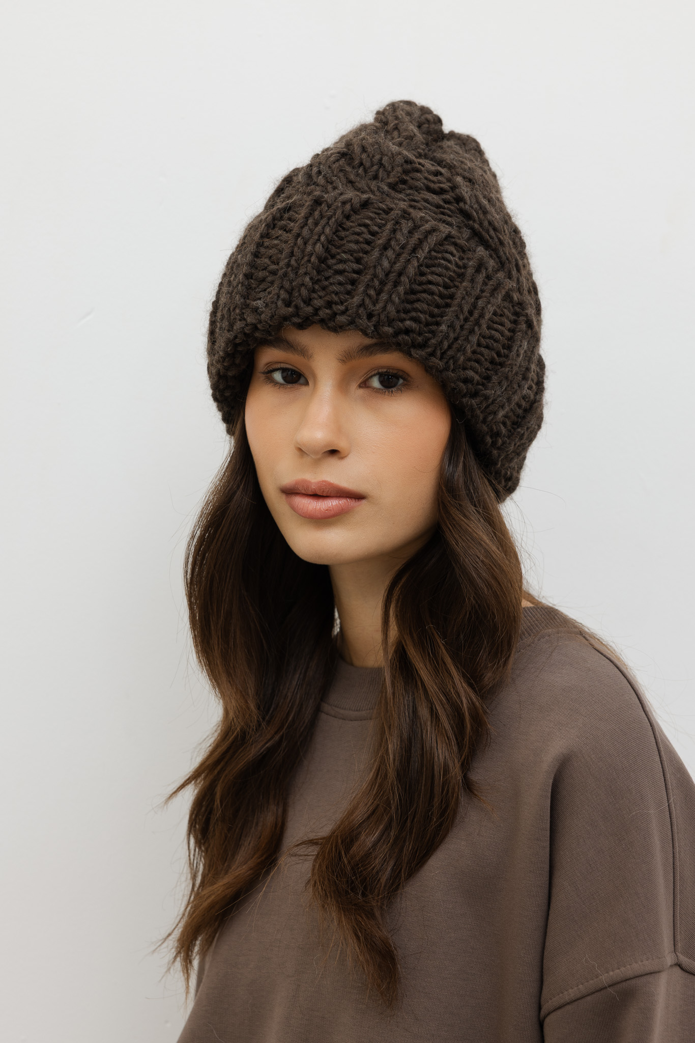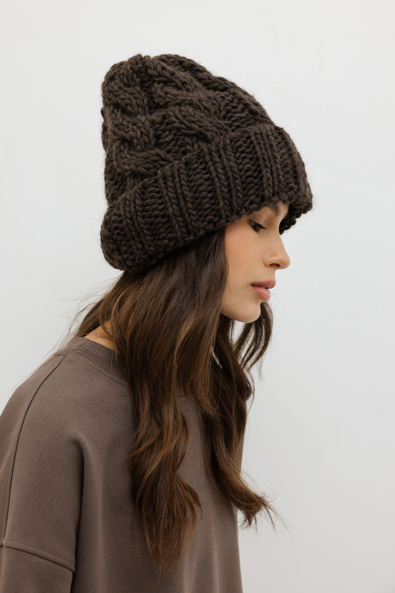 WEŁNIANA CZAPKA PRINCE CZEKOLADOWA