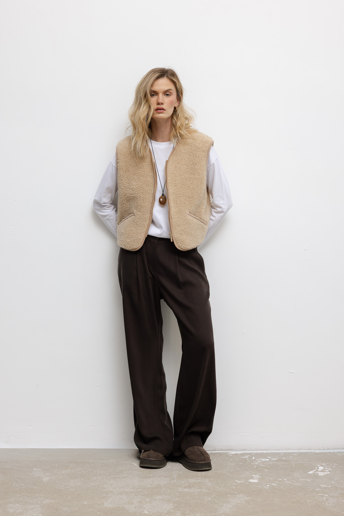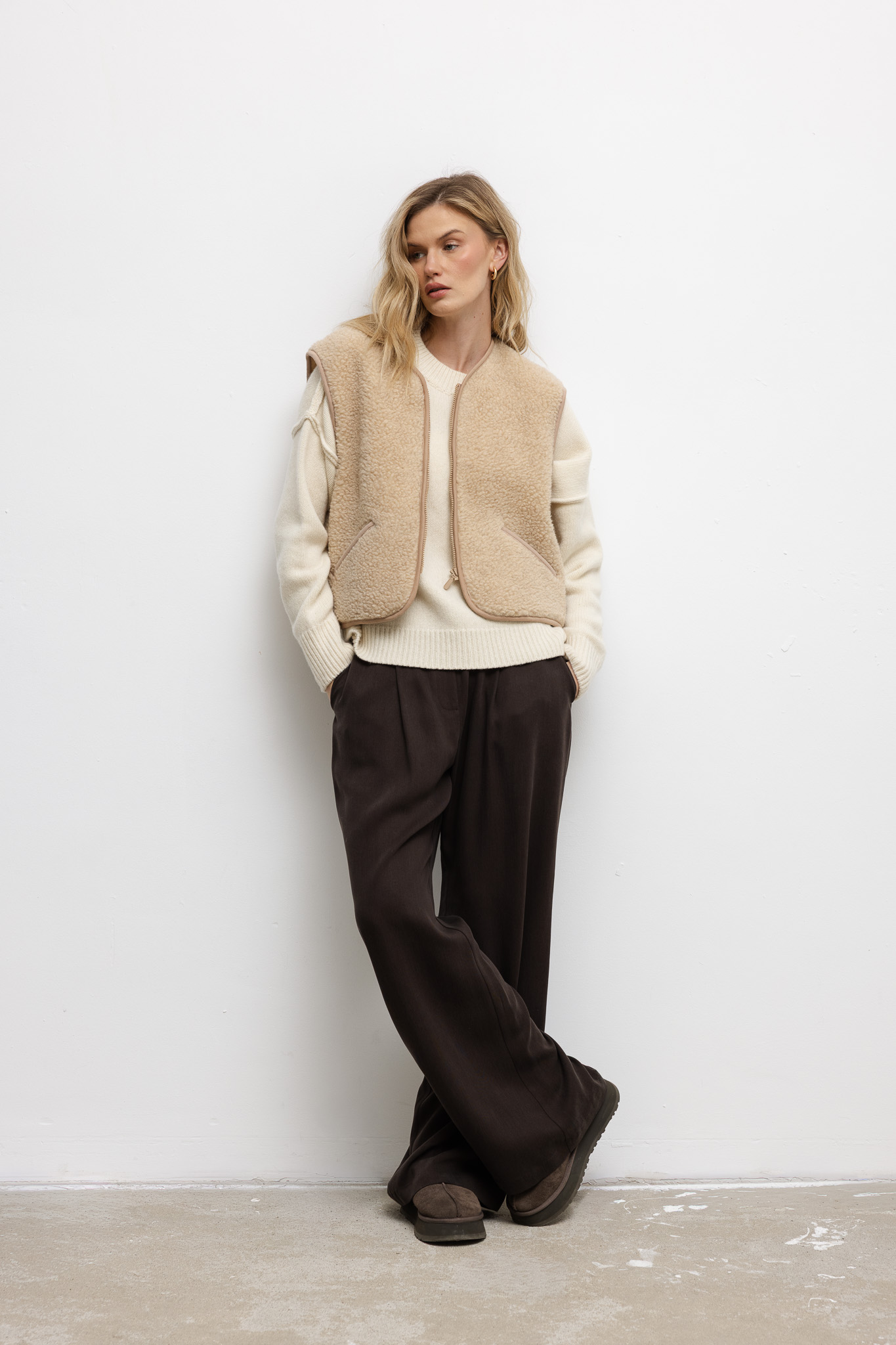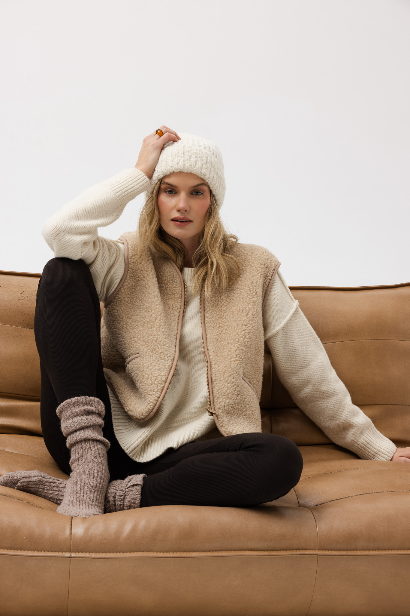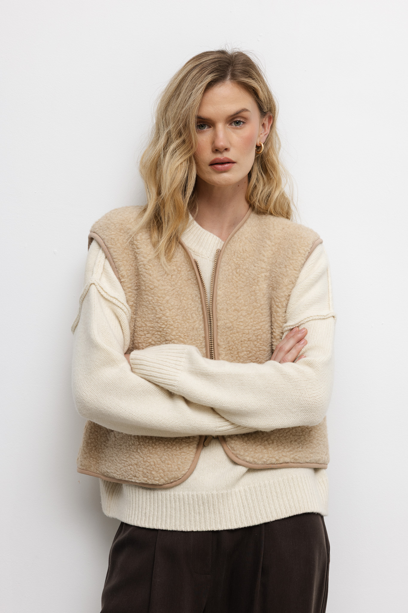 WEŁNIANA KAMIZELKA TEDDY BEŻOWA damska kamizelka typu baranek beżowa