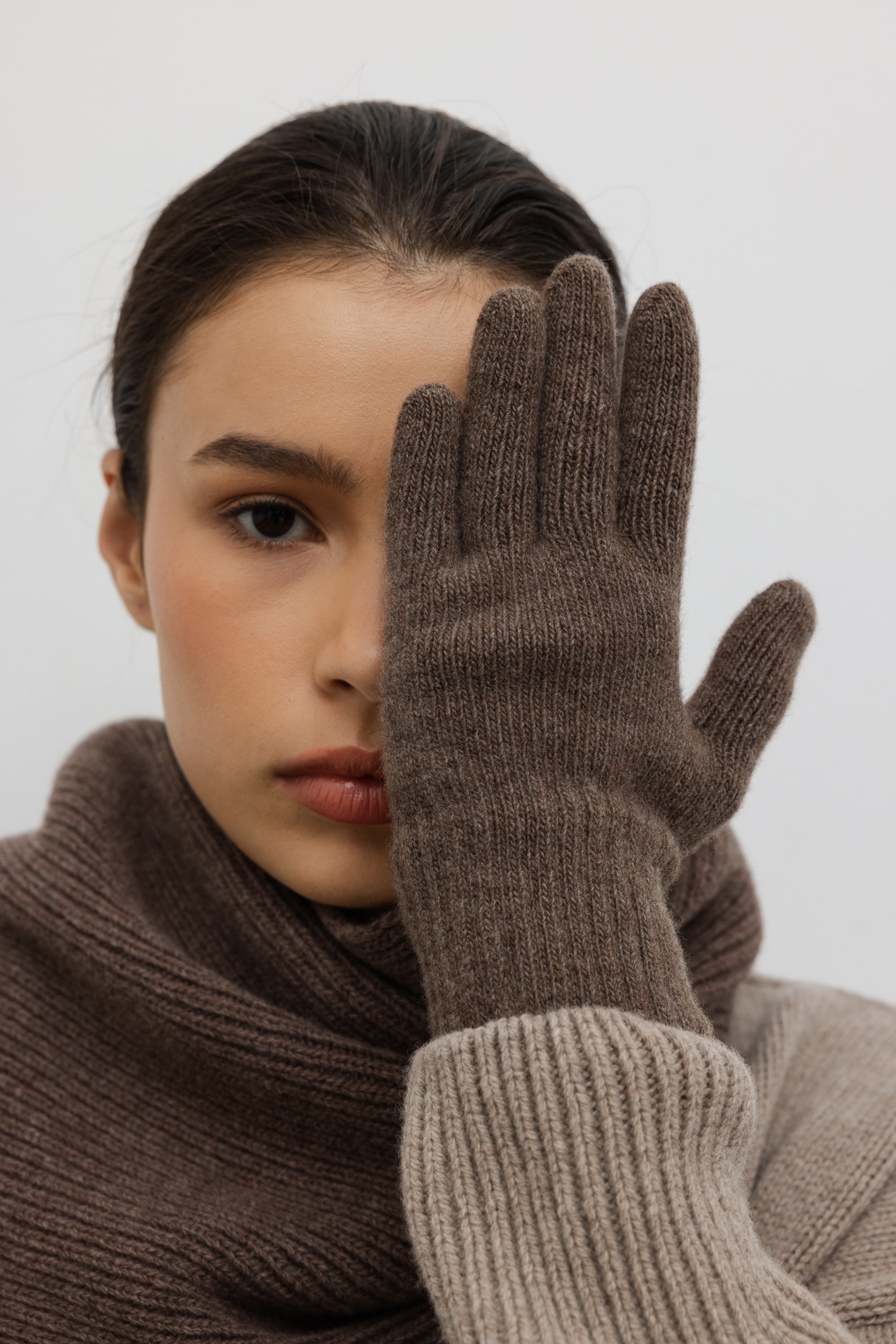WEŁNIANE RĘKAWICZKI INES BRĄZOWE