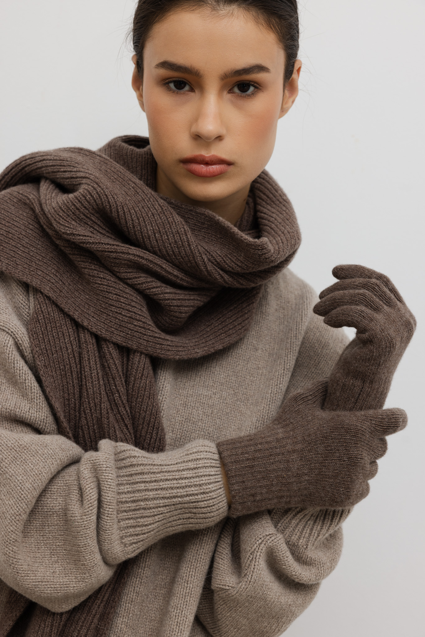damskie WEŁNIANE RĘKAWICZKI INES BRĄZOWE