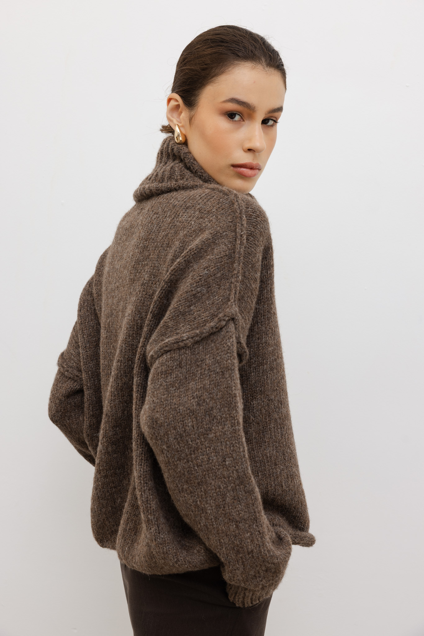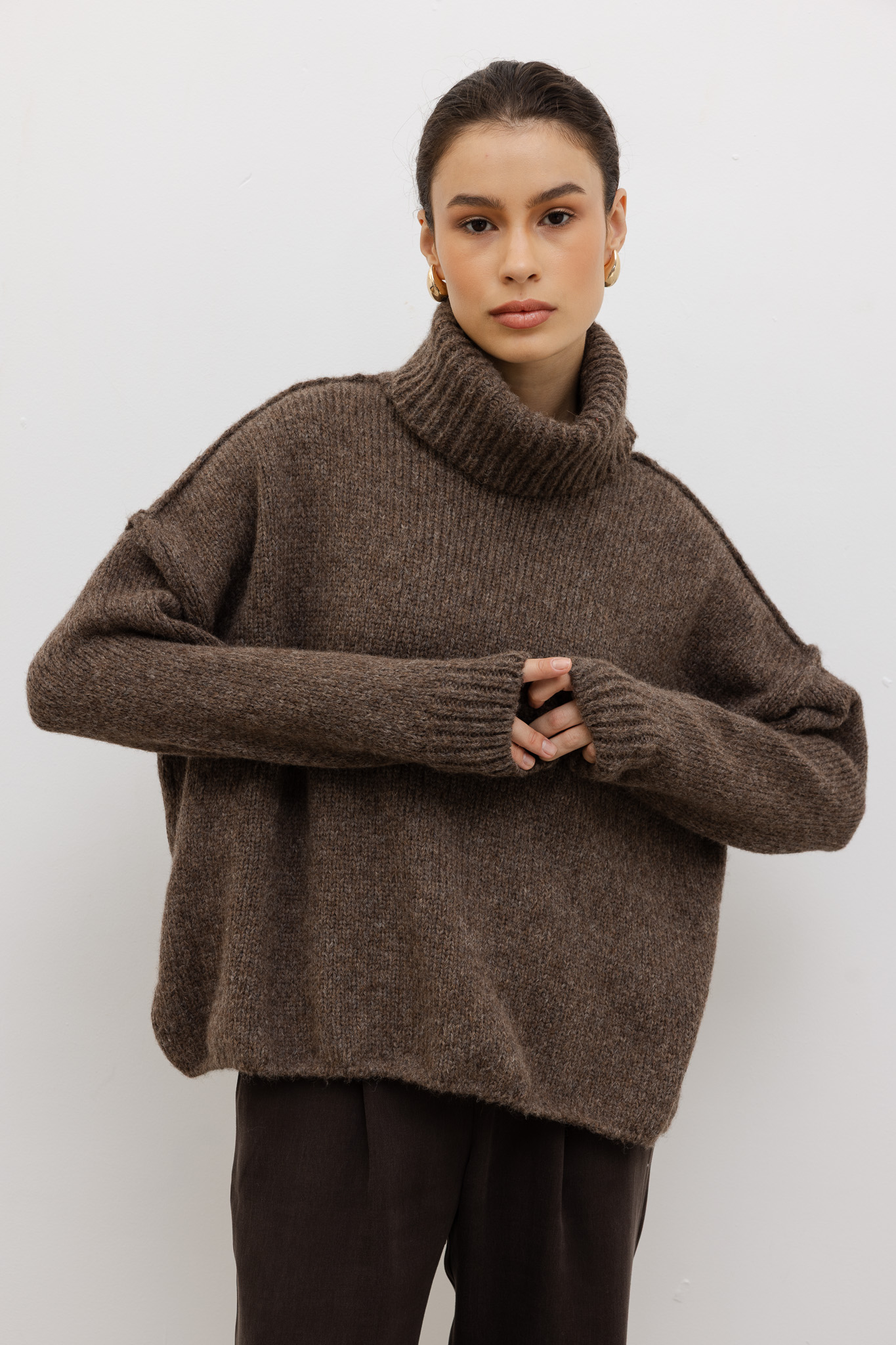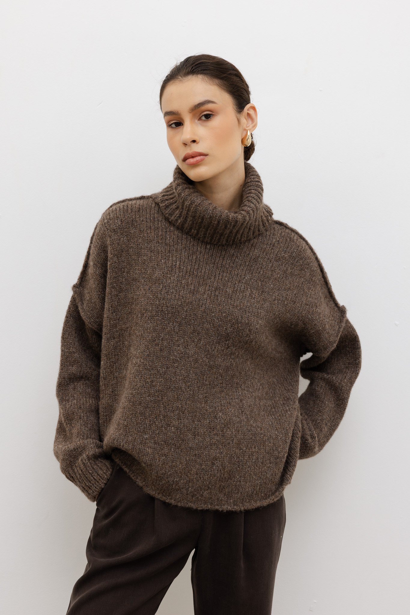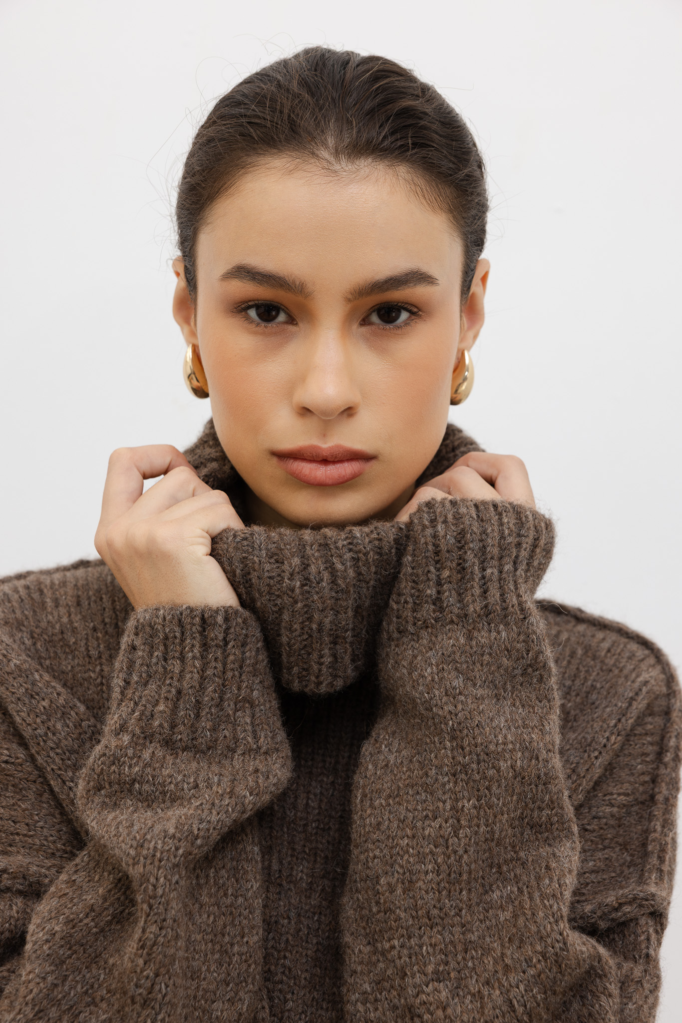 WEŁNIANY GOLF ADELE BRĄZOWY damski oversizowy wełniany golf brązowy