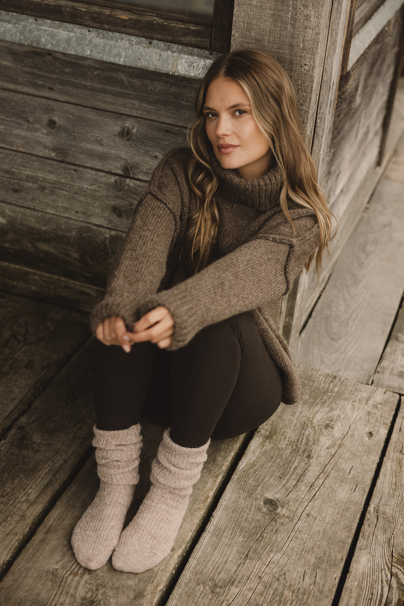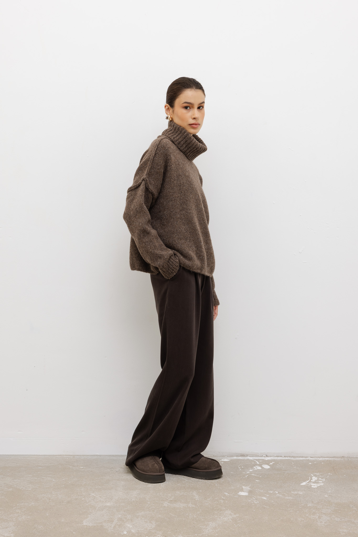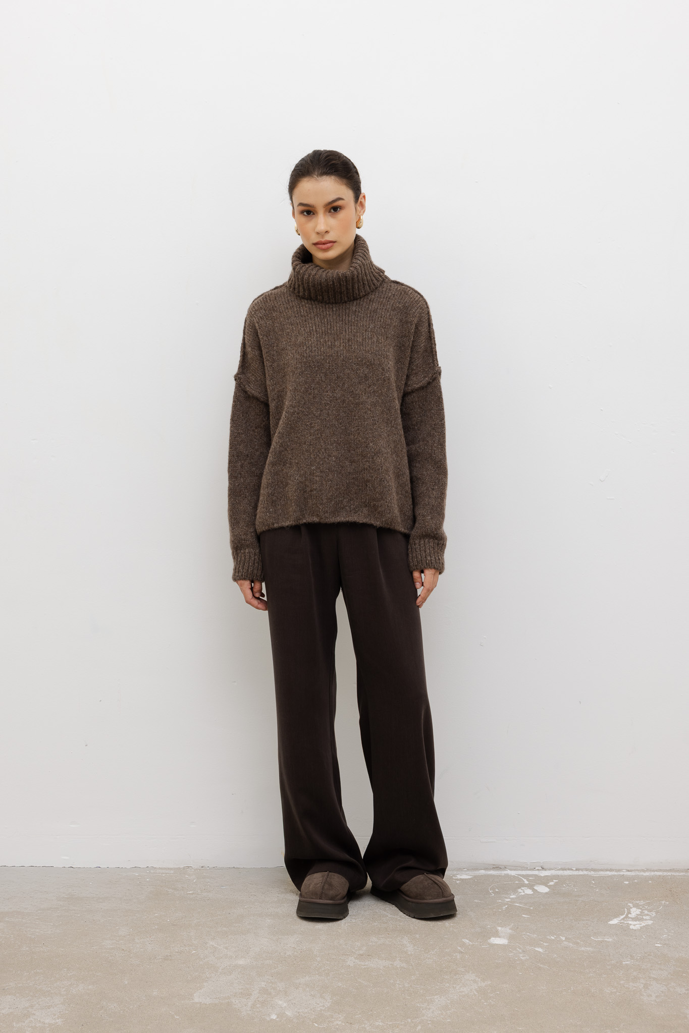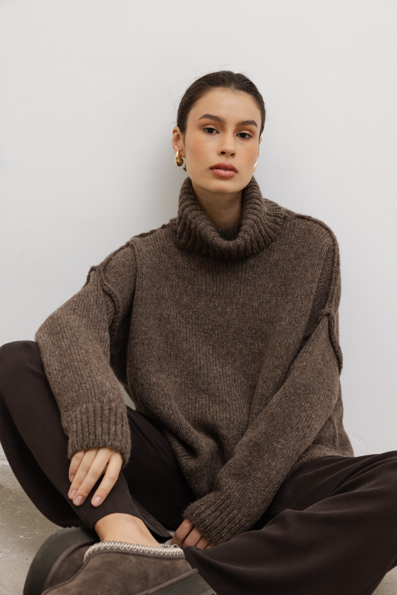 WEŁNIANY GOLF ADELE BRĄZOWY damski oversizowy wełniany golf brązowy