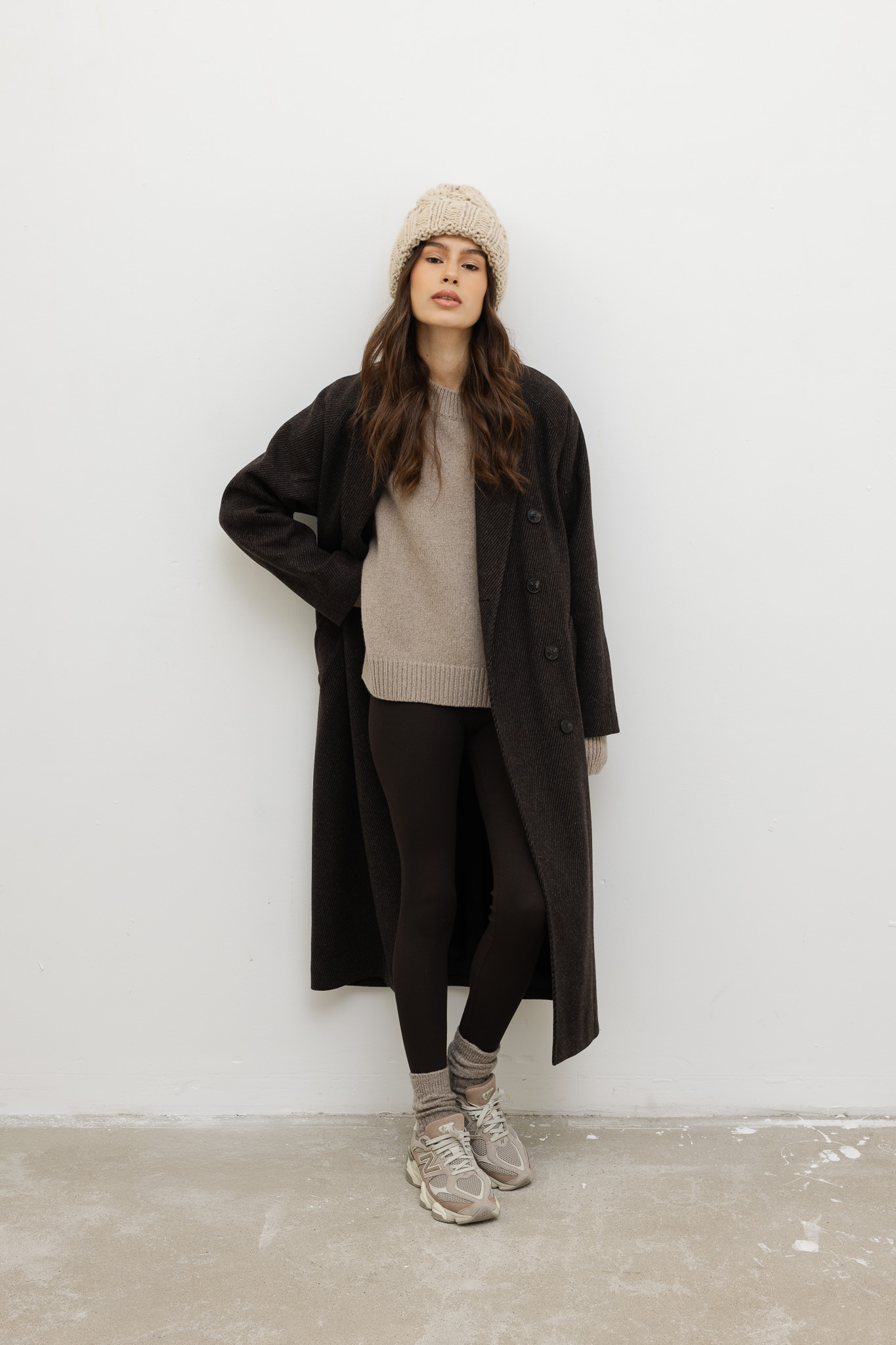 damski WEŁNIANY PŁASZCZ HARPER BRĄZOWY