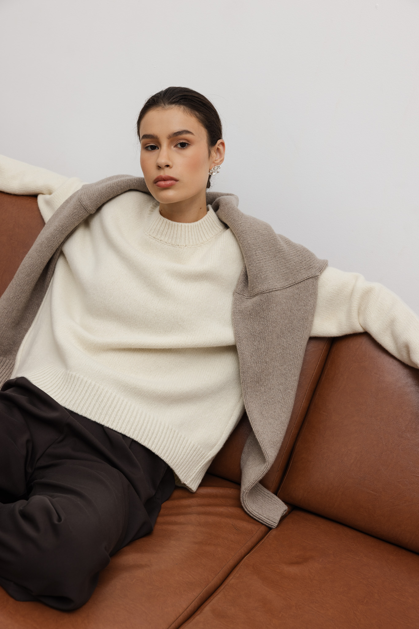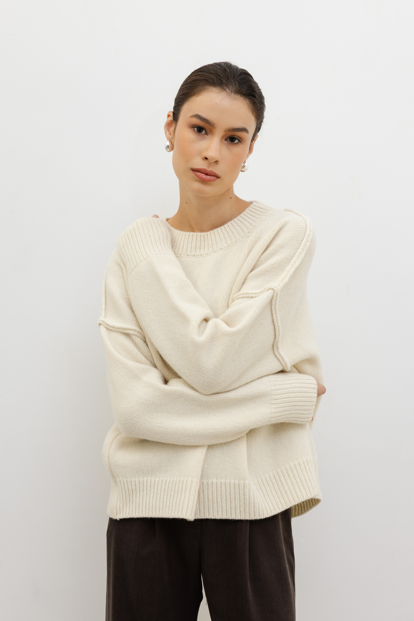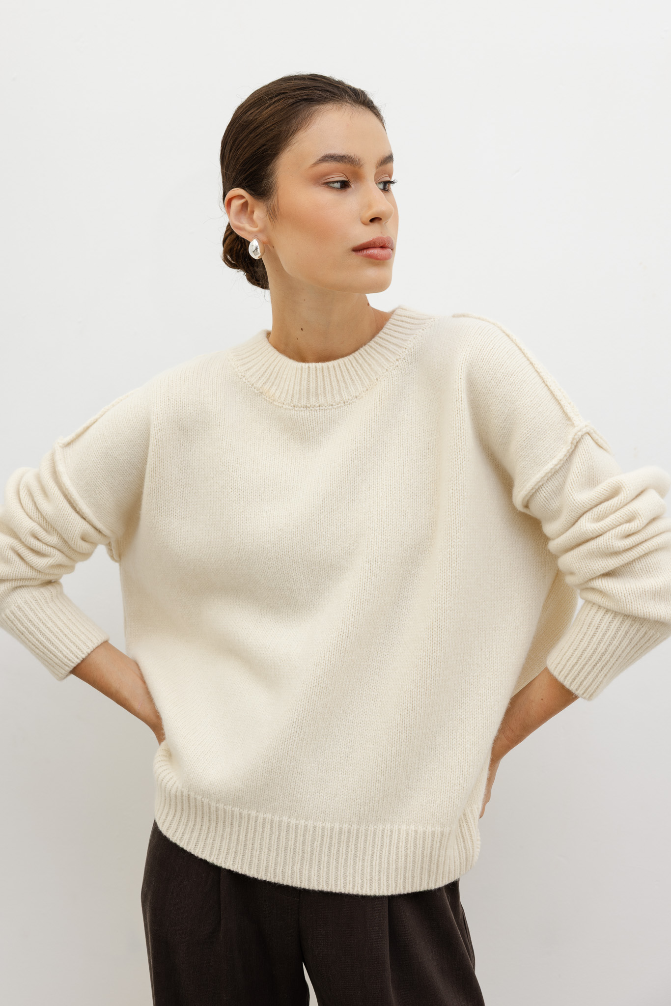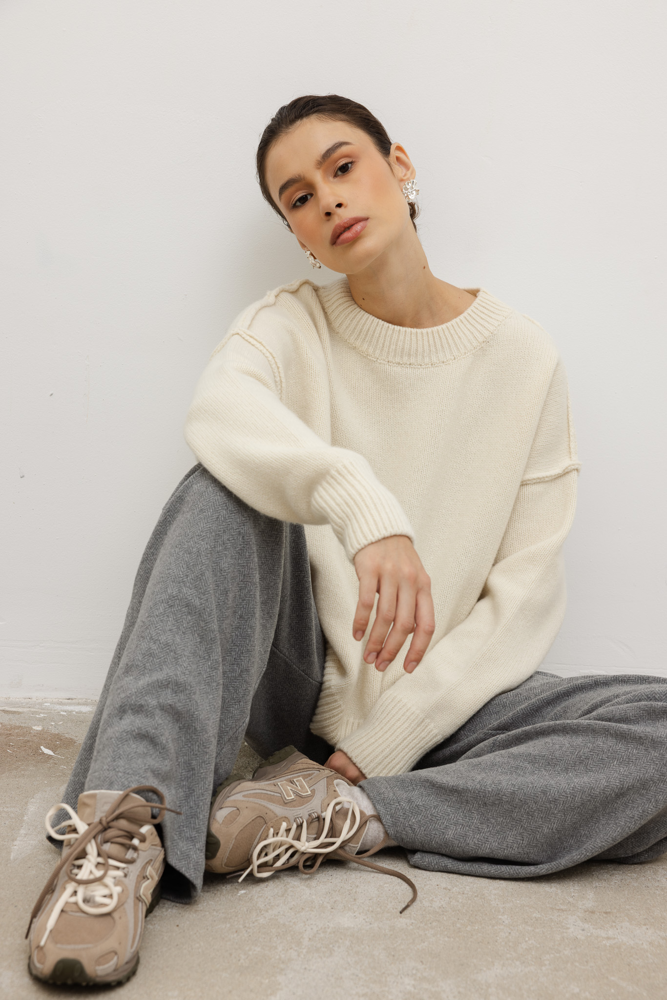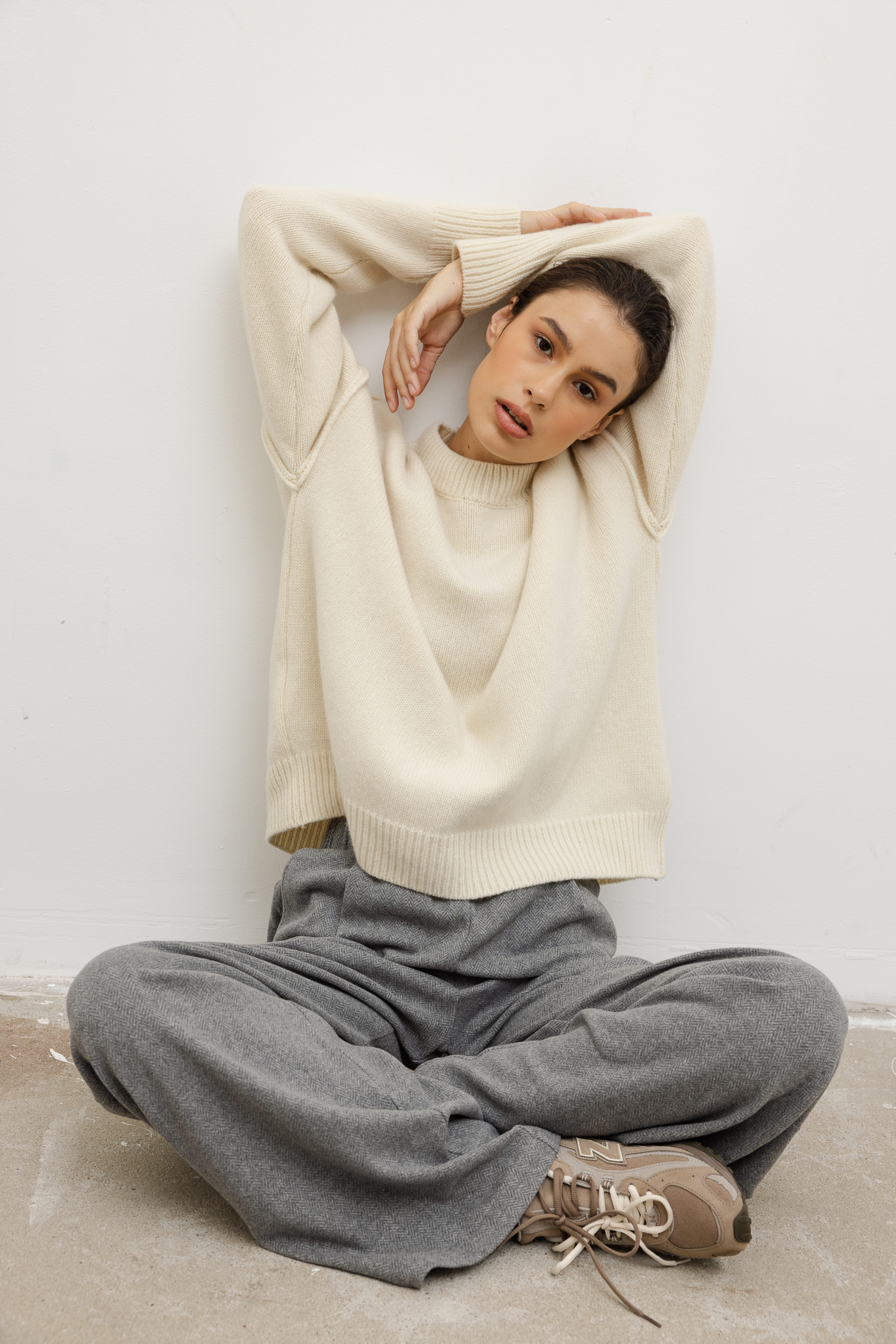 WEŁNIANY SWETER DEMETER ECRU damski zimowy oversizowy sweter ecru