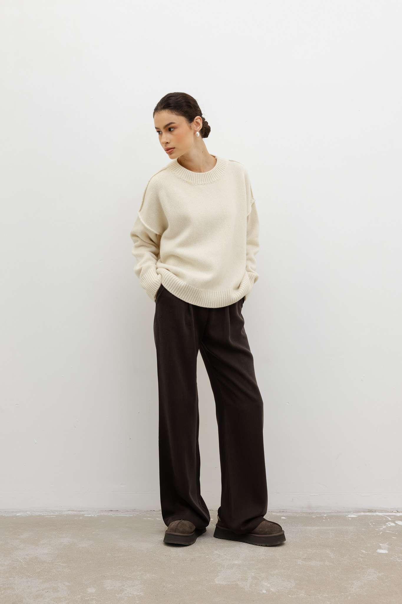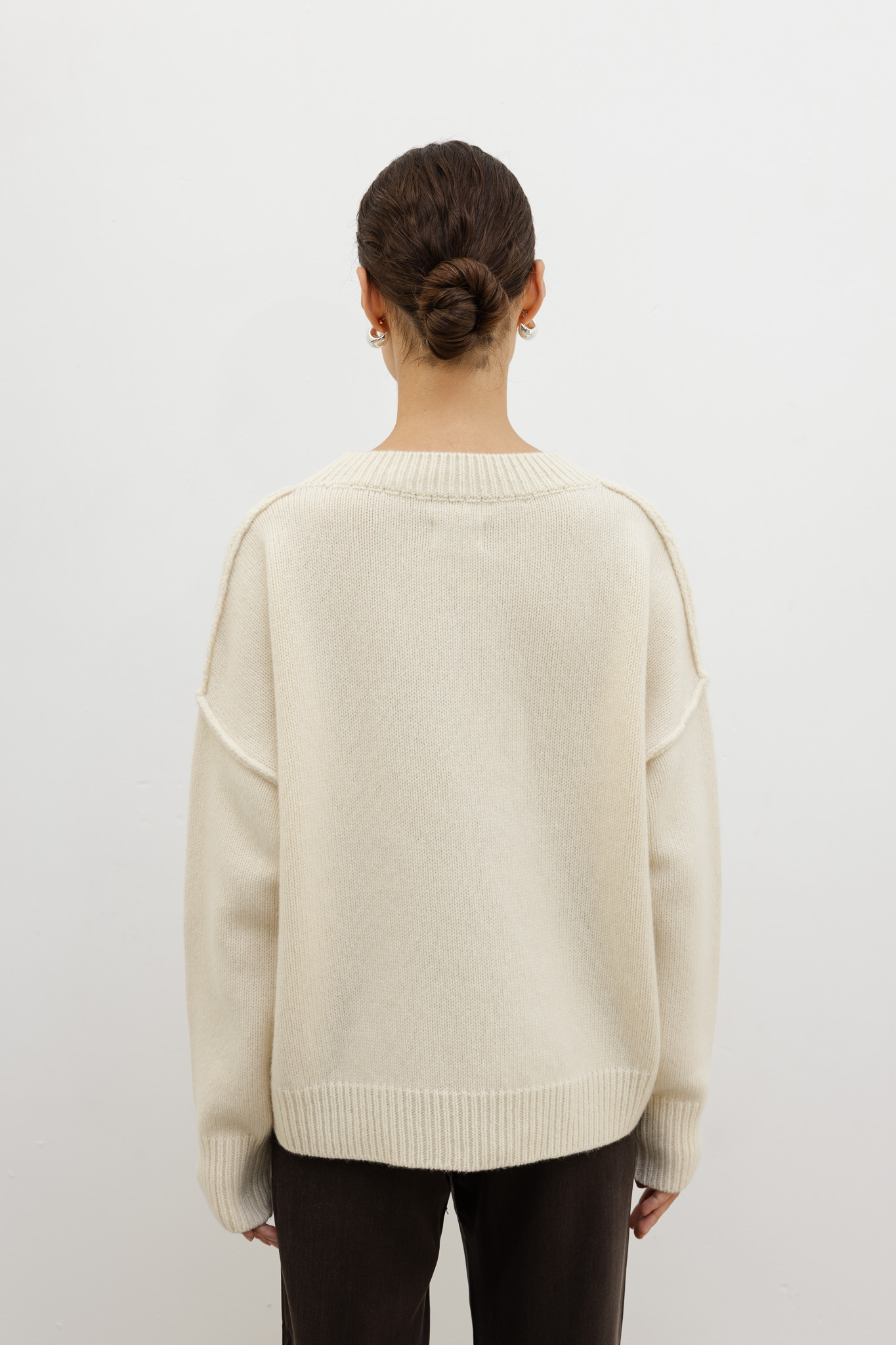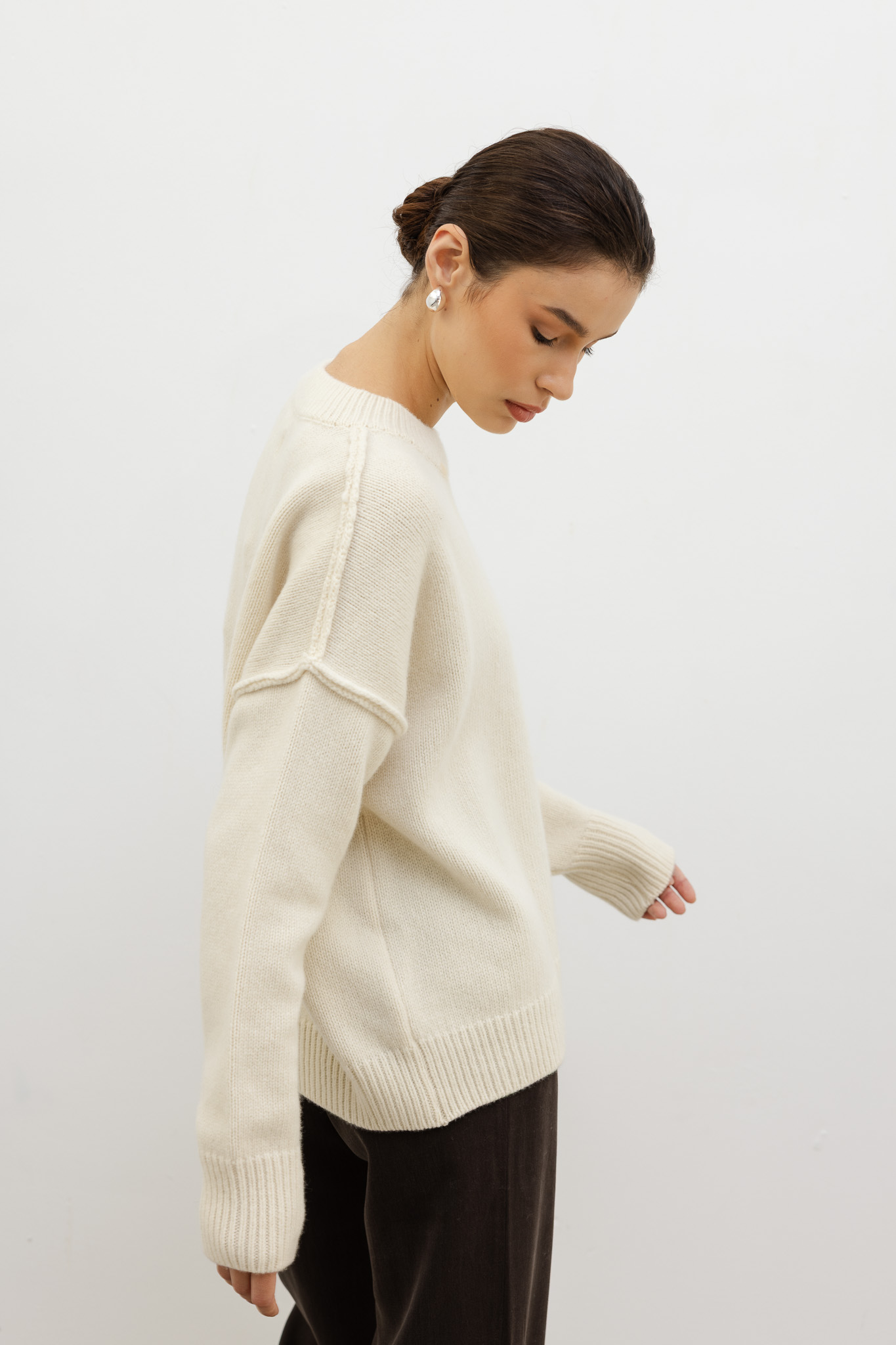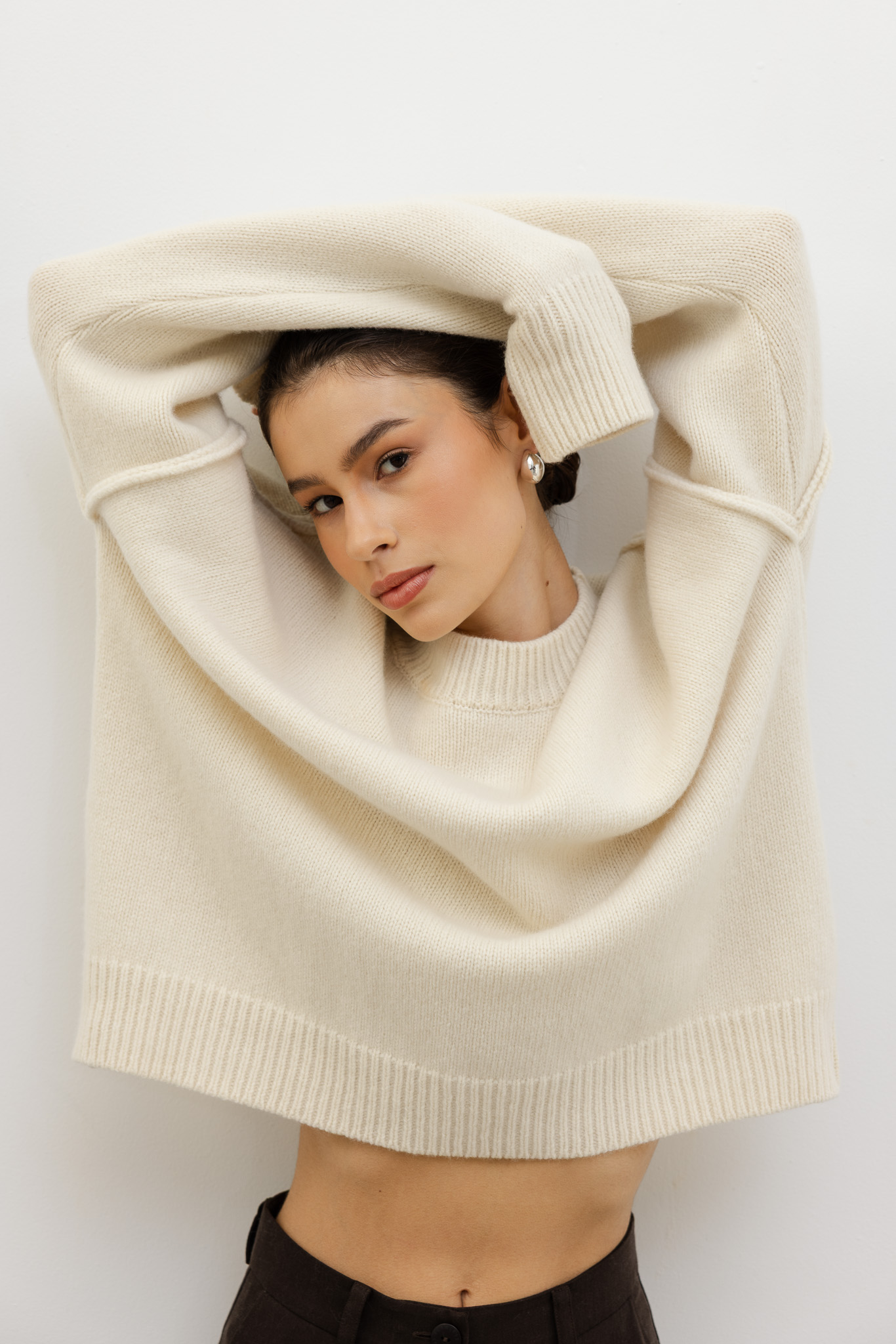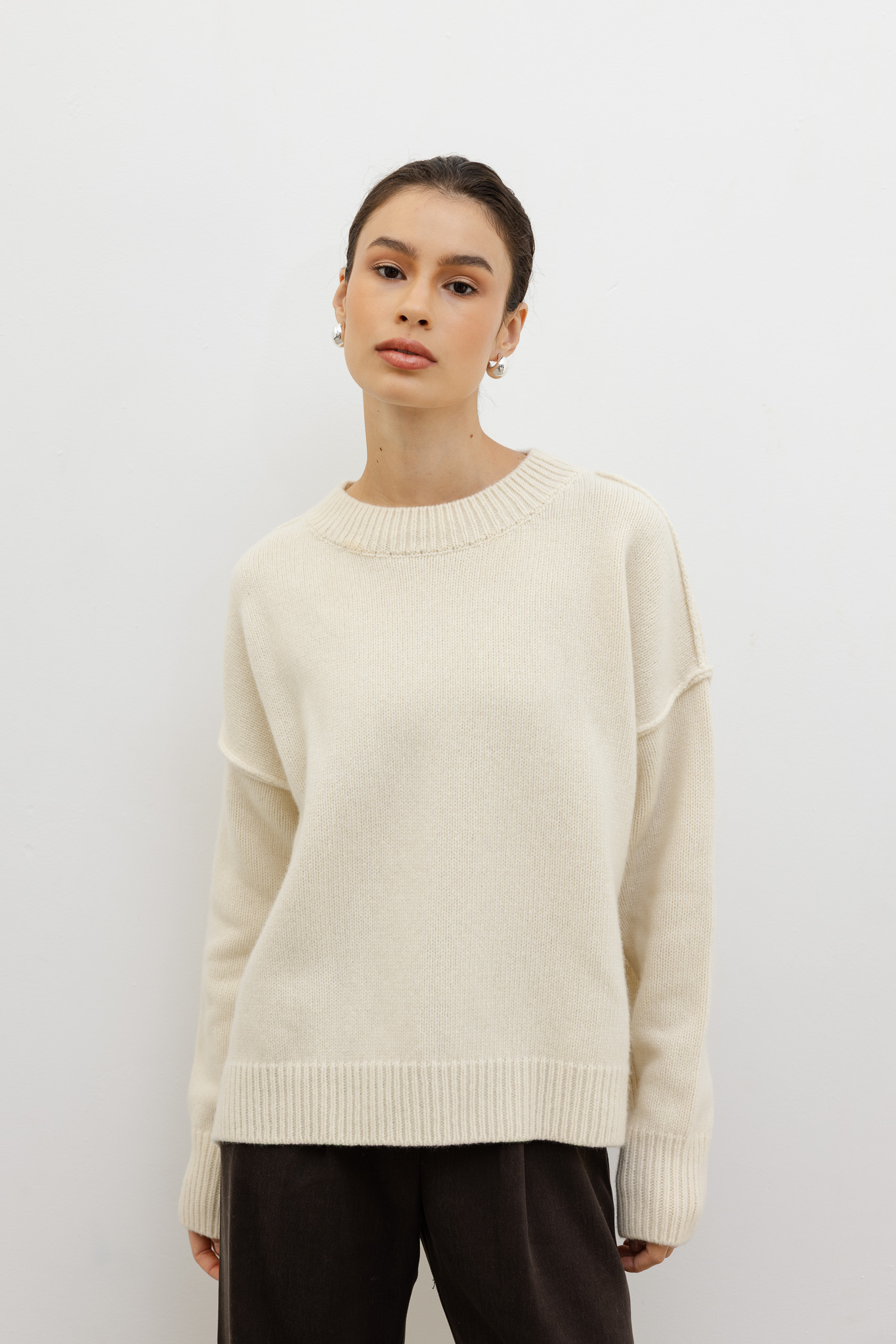 WEŁNIANY SWETER DEMETER ECRU damski zimowy oversizowy sweter ecru