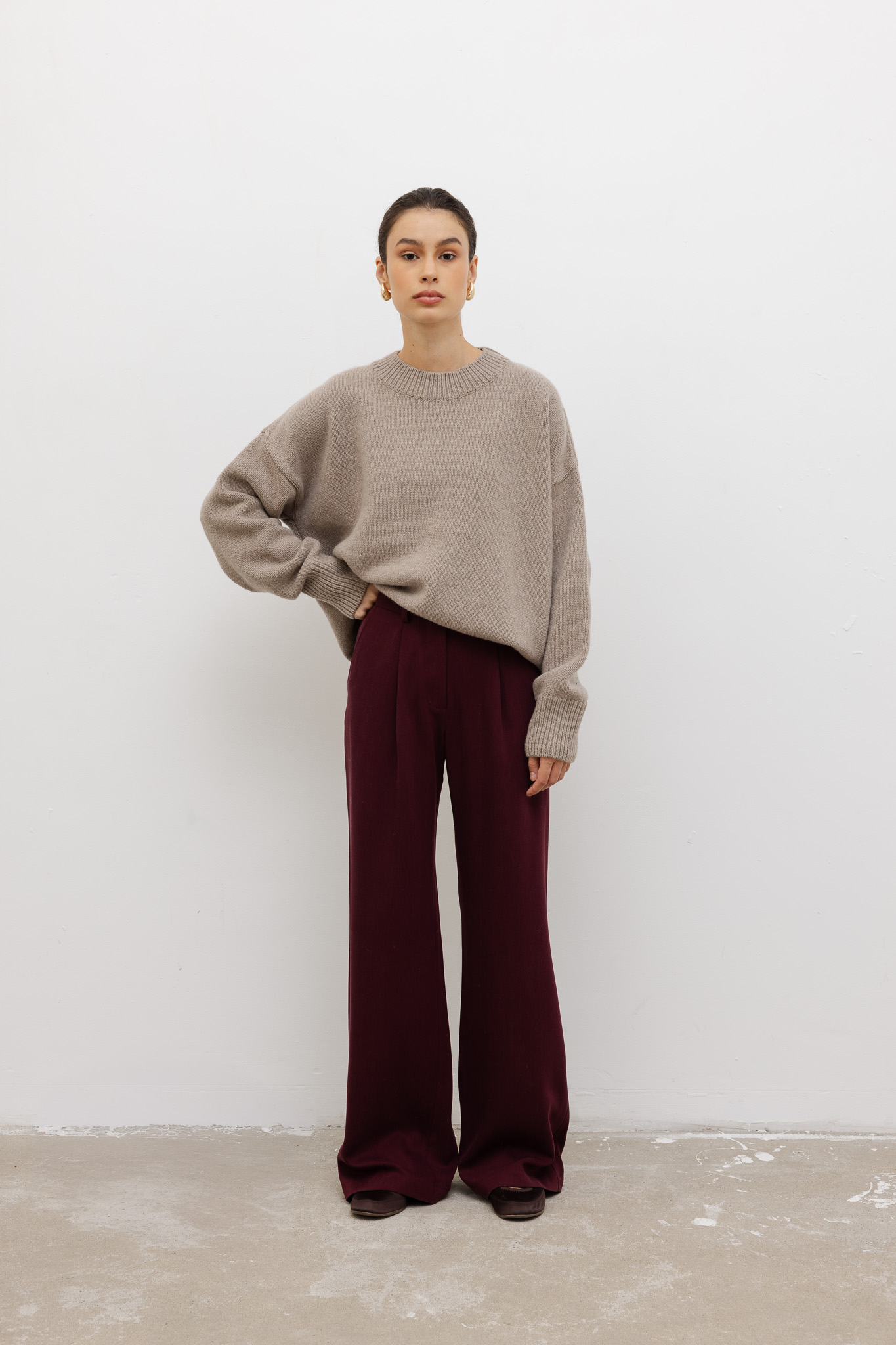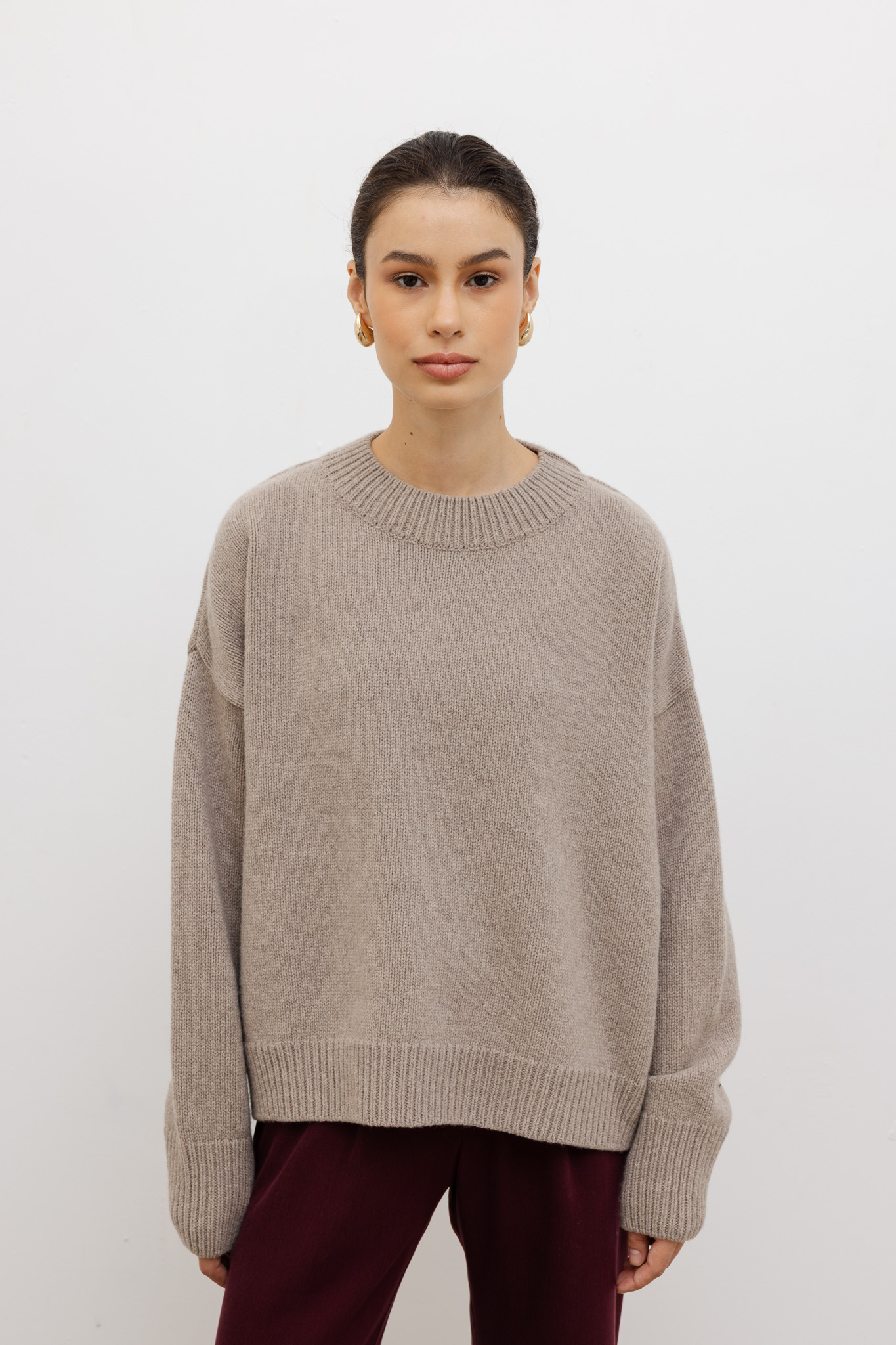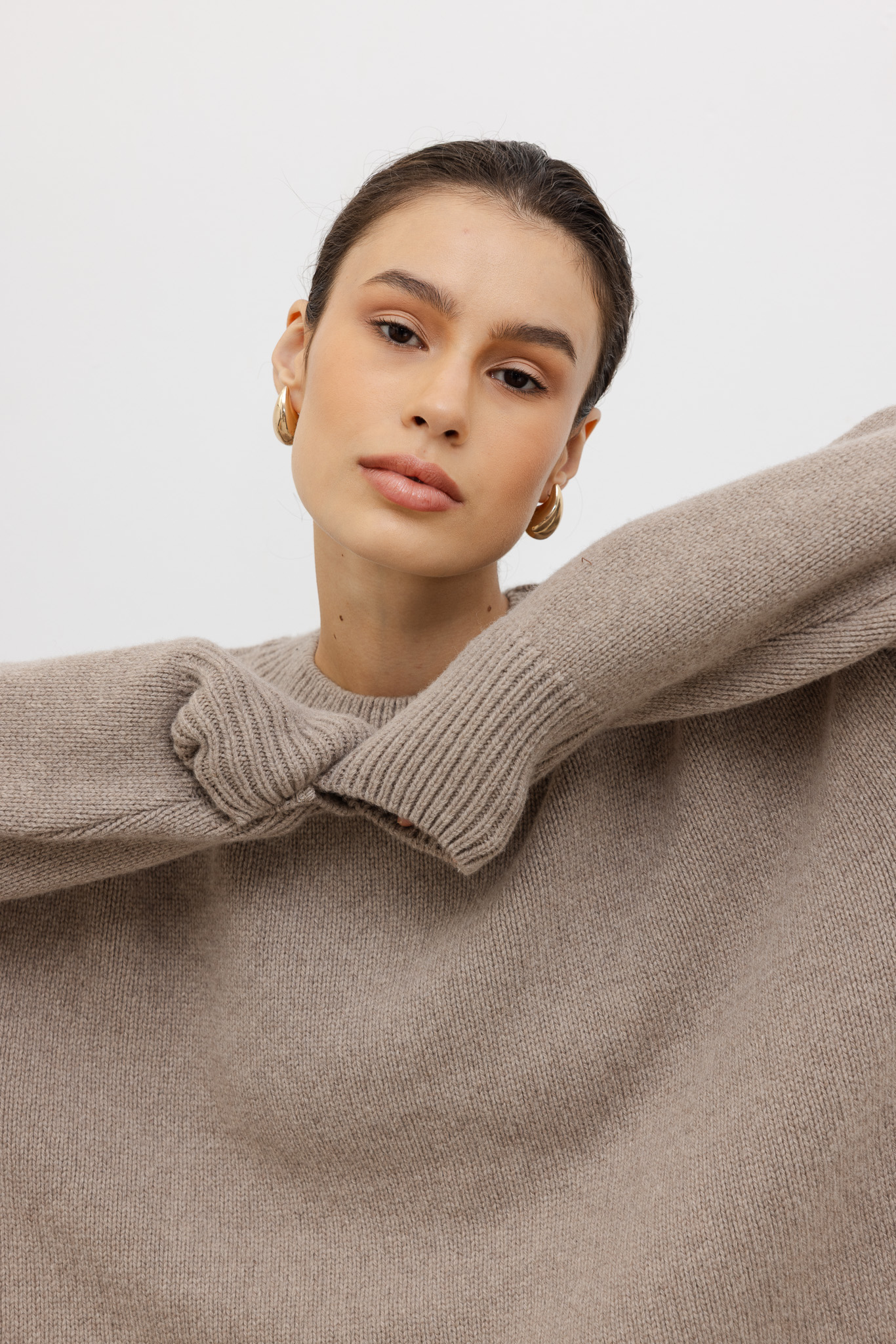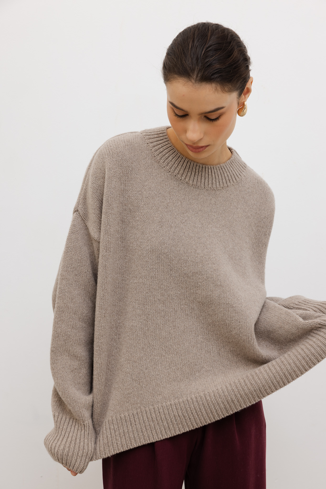 WEŁNIANY SWETER INES TAUPE damski wełniany oversizowy sweter taupe