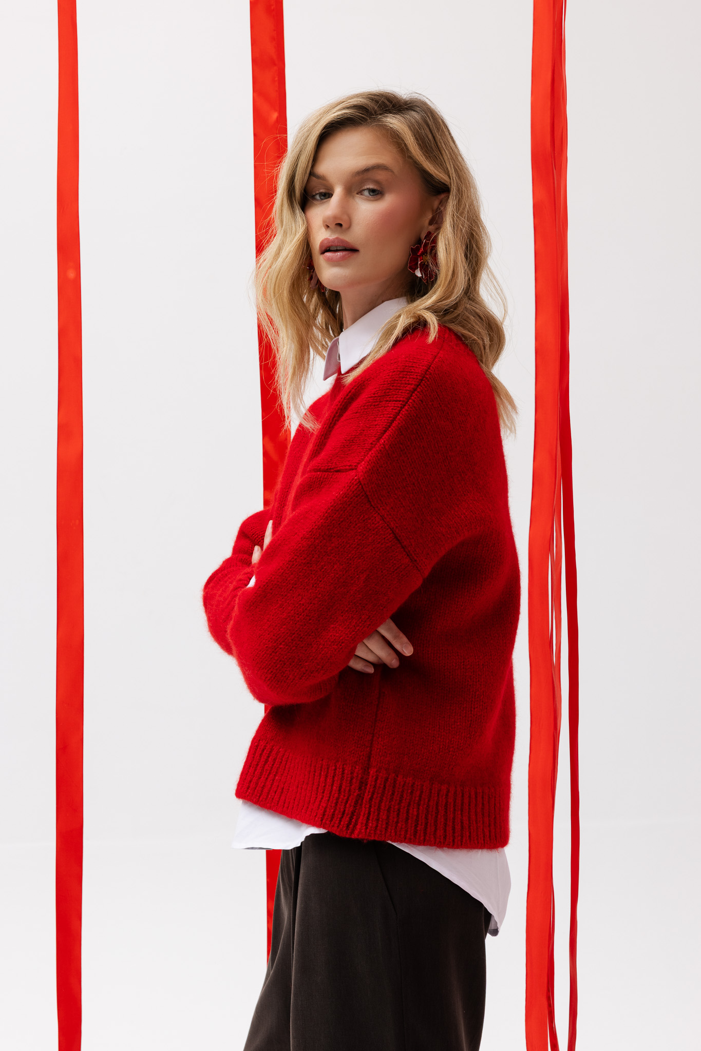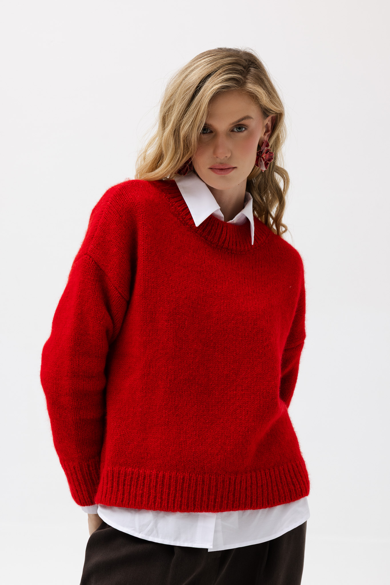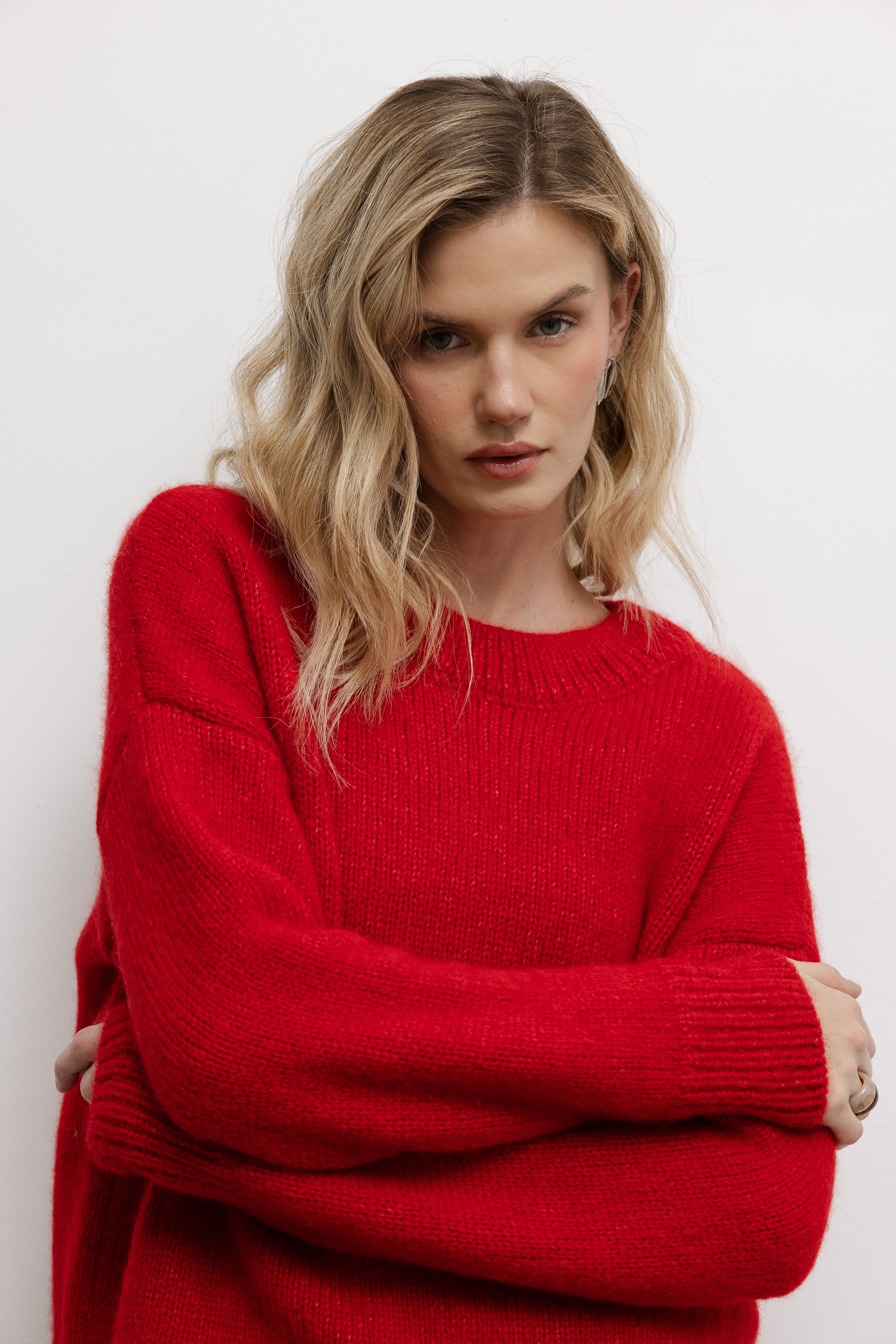 damski WEŁNIANY SWETER JESSIE CZERWONY